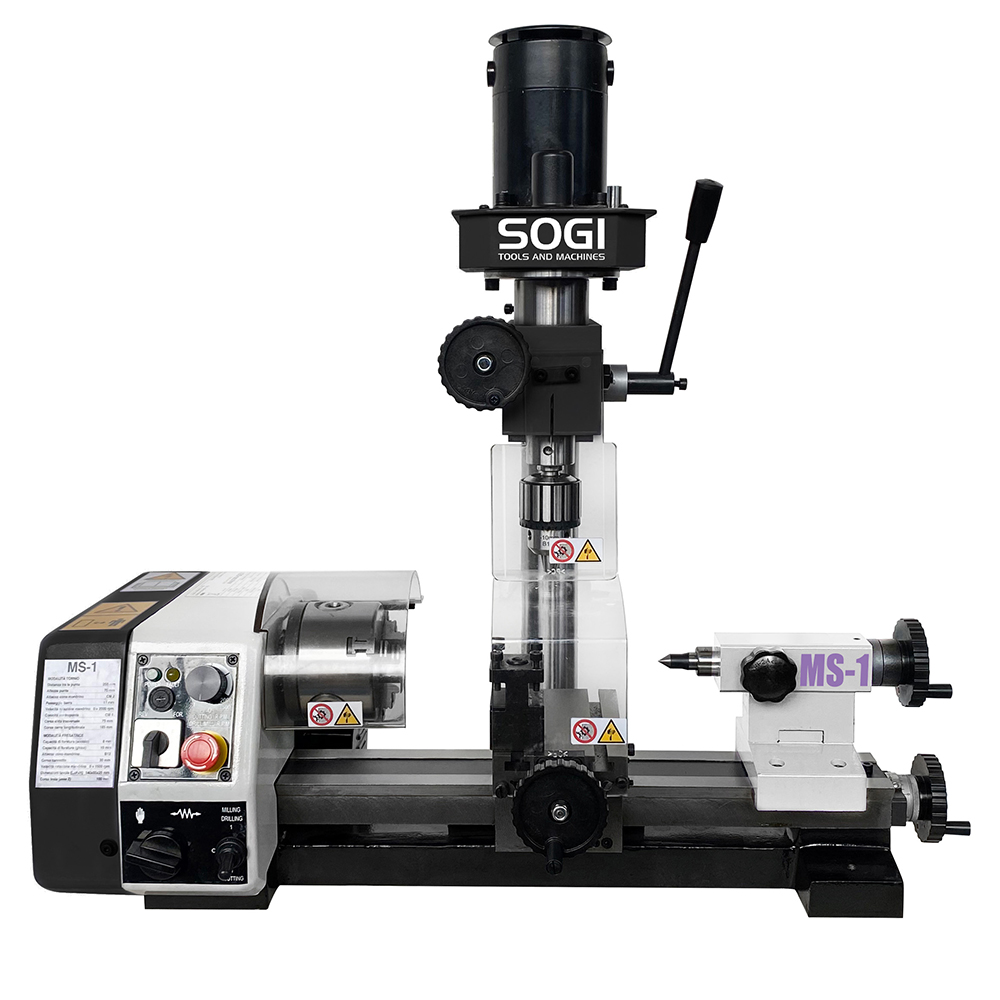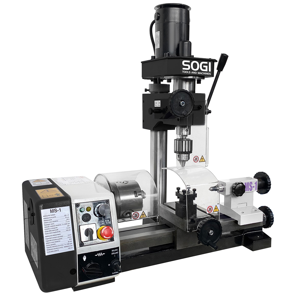 Per chi è alla ricerca di una macchina utensile che combini l'azione del tornio con quella di una fresatrice, compatta e facile da usare, SOGI propone la combinata MS-1. Dalle dimensioni contenute ma in grado di realizzare una vasta gamma di lavorazioni, il tornio-fresa combinato SOGI MS-1 consente l'esecuzione di torniture (sia coniche che cilindriche), filettature Metriche, forature, alesature, profilature su materiali quali ghisa e acciaio.