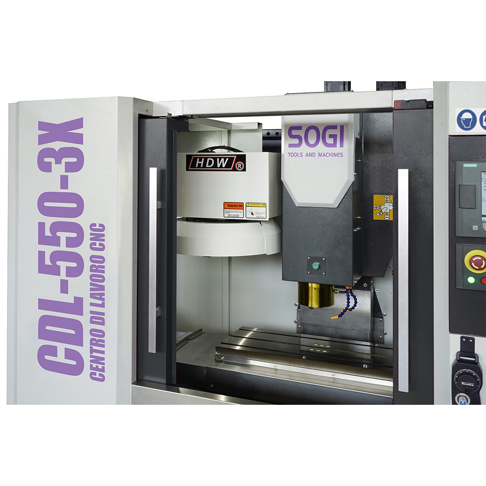 Il centro di lavoro verticale SOGI CDL-550-3X è una macchina a controllo numerico a tre assi in grado di effettuare molteplici lavorazioni su materiali metallici e leghe derivate, materiali polimerici e molto altro. Grazie alla sua versatilità d'utilizzo, la macchina si presta particolarmente bene ad un impiego nel campo industriale e prototipazione per la messa a punto di componenti più o meno complessi garantendo un'elevata precisione nel risultato (giunti, alberi di trasmissione ecc.).