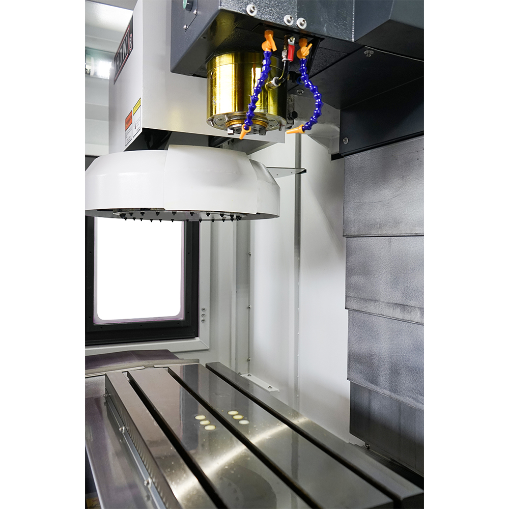 • Cambio utensile (ATC) a ombrello a 16 posizioni. Il caricamento dell'utensile avviene con estrema precisione per mezzo di un sistema navetta-carosello.