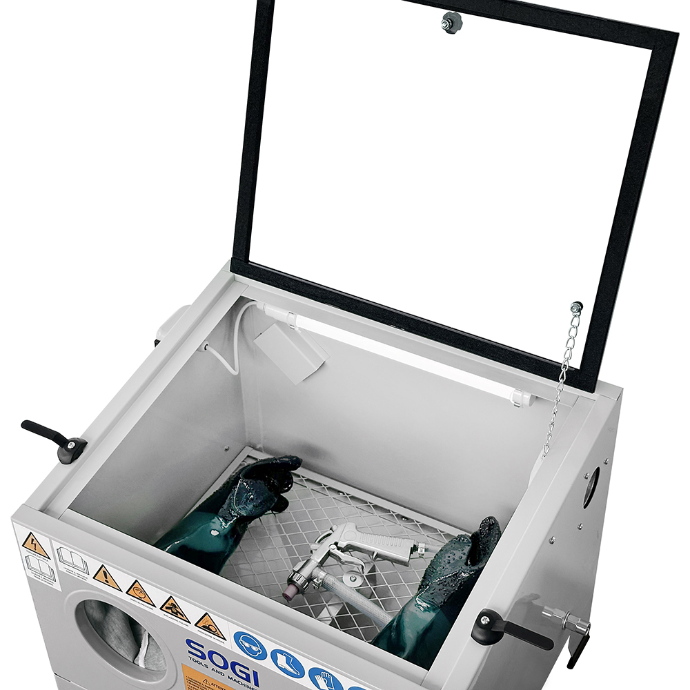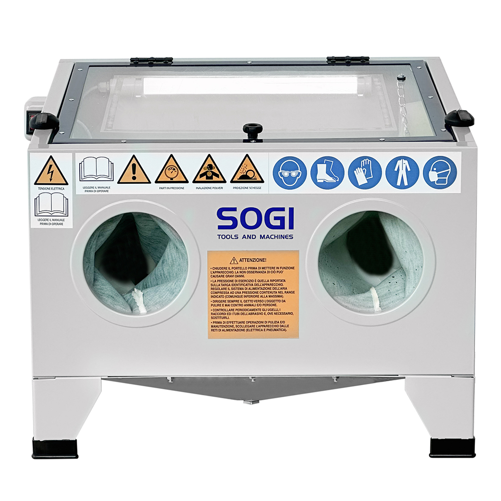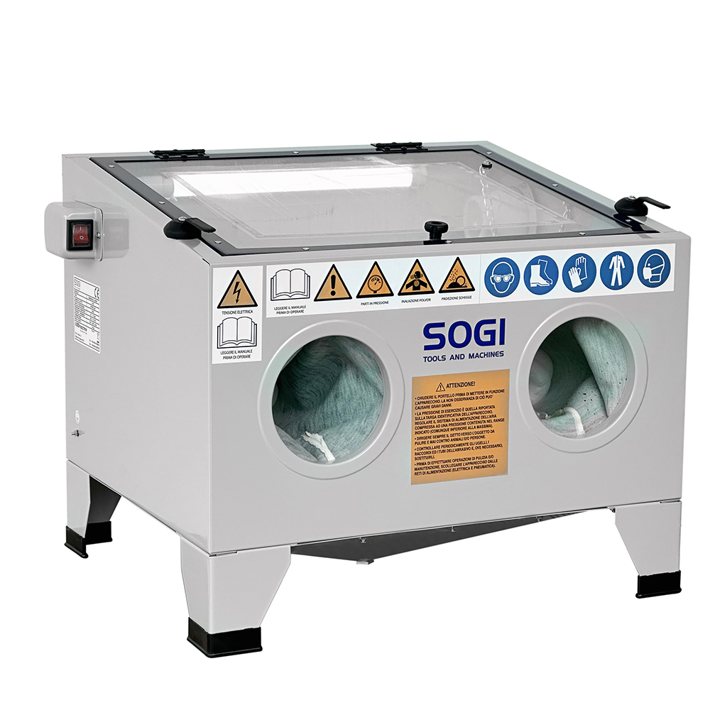 Sabbiatrice SOGI S-56 da banco + 25 kg corindone grana 80 + 25 kg microsfere vetro grana 200/300