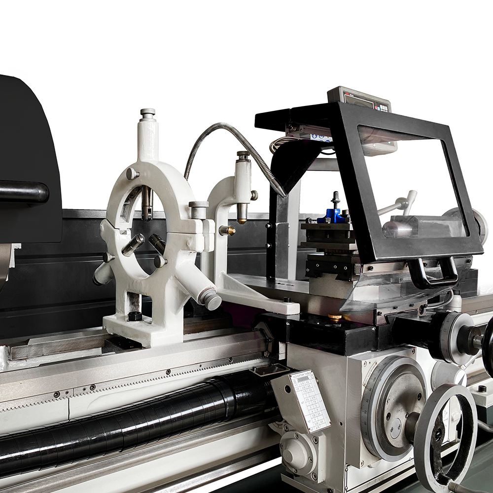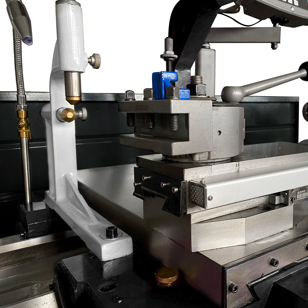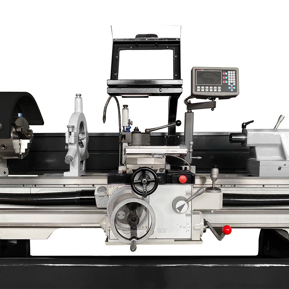 Nell'equipaggiamento di serie è incluso il visualizzatore di quote, strumento dal design funzionale e moderno, in grado di visualizzare la posizione dell'utensile in 3 assi con precisioni fino a 0.5 µm. Il mandrino, così come la torretta portautensile, sono provvisti di ripari in policarbonato e lamiera interbloccati (micro-interruttori) nel rispetto degli standard vigenti in materia di sicurezza. La macchina è dotata di impianto di lubrorefrigerazione e lampada LED. Sempre di serie, il tornio parallelo professionale SOGI M7-1500D è fornito di basamento di appoggio in ghisa. Presente anche un comparatore di filettature ed un sistema di lubrificazione guide di scorrimento carro e slitta trasversale azionabile per mezzo di apposito pomello.