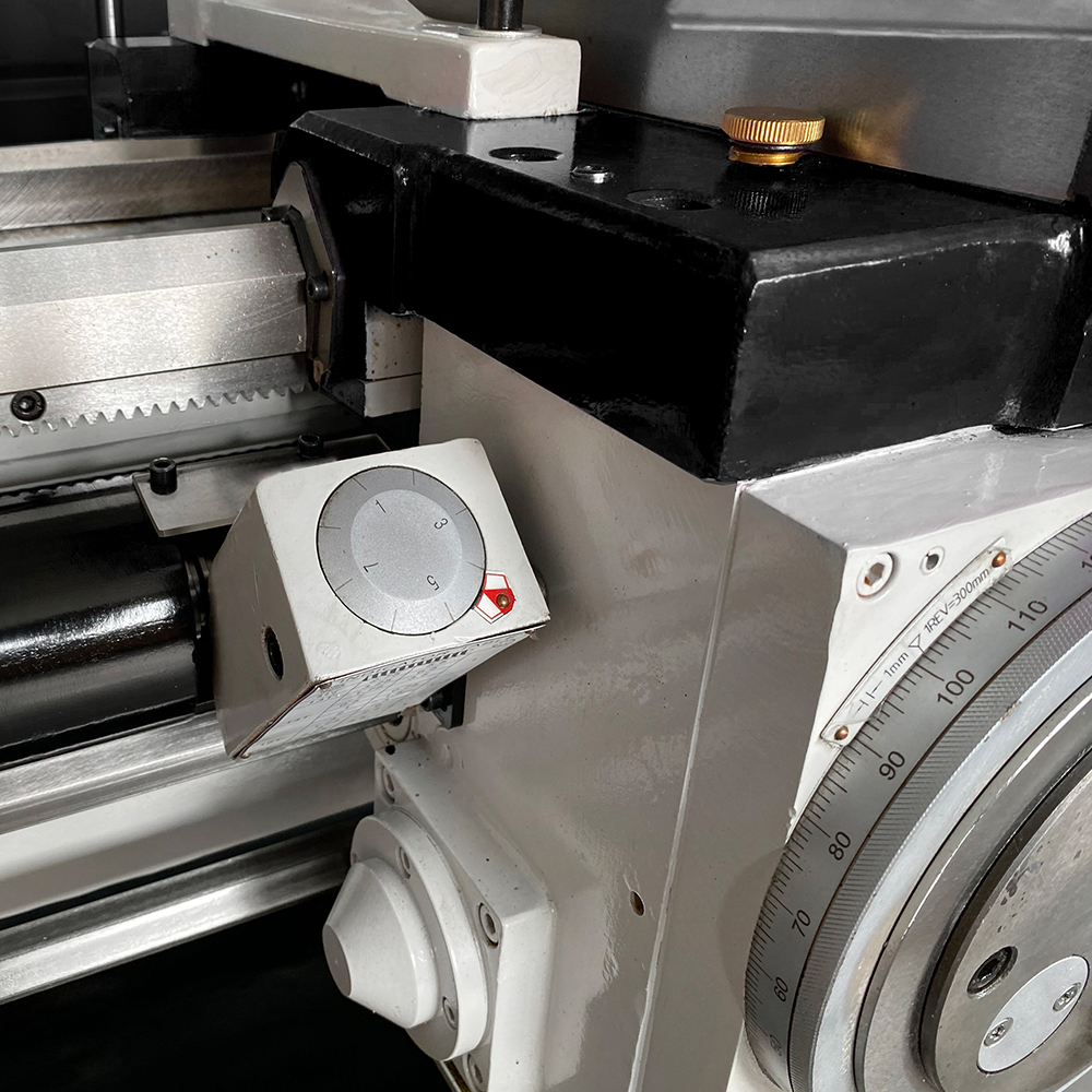 Il tornio industriale SOGI M7-1500D ha avanzamenti longitudinali e trasversali automatici per l'esecuzione sistematica della lavorazione. La controtesta è facilmente regolabile per torniture coniche e il cannotto consente l'avanzamento della contropunta tramite apposito volantino con nonio graduato. La torretta Multifix a cambio rapido permette una regolazione dell'altezza dell'utensile garantendone un preciso allineamento con l'asse mandrino.