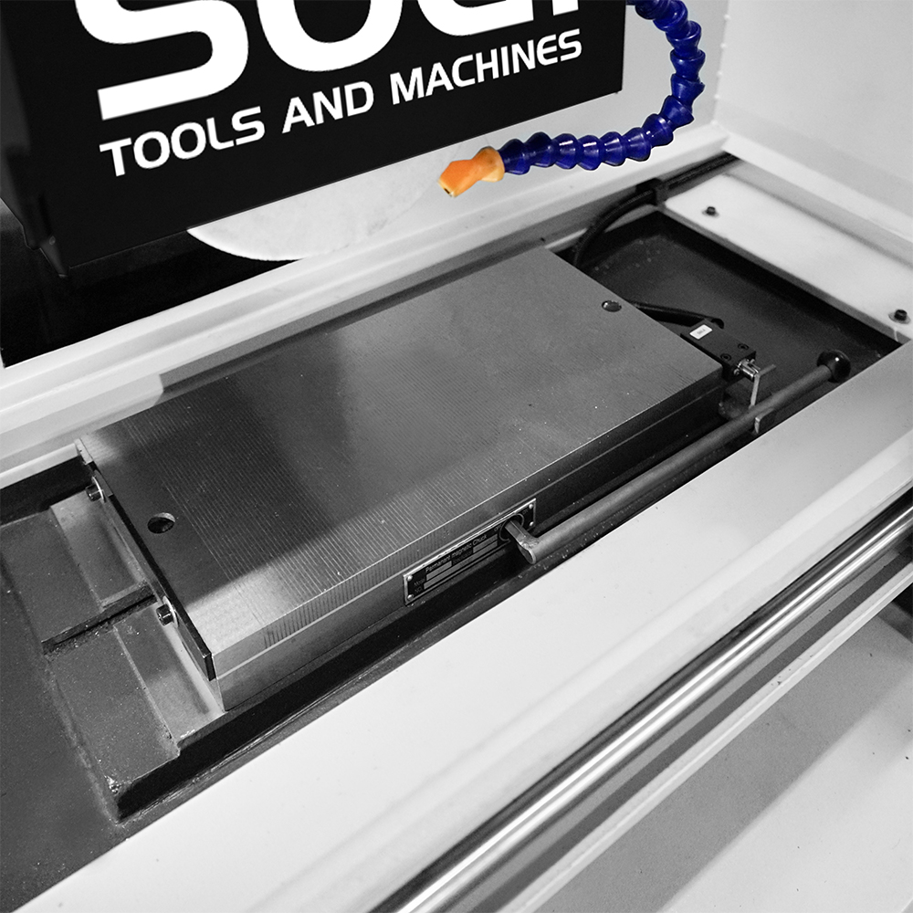 Strutturalmente la rettificatrice professionale SOGI RT-500 è costituita da un bancale in ghisa grigia che supporta una tavola portapezzo provvista di piano a magneti permanenti per l'ancoraggio dei componenti da lavorare: grazie a questa tecnologia innovativa, i tempi di carico/scarico pezzo si riducono, la sicurezza durante le operazioni aumenta e la flessibilità di utilizzo è assicurata.