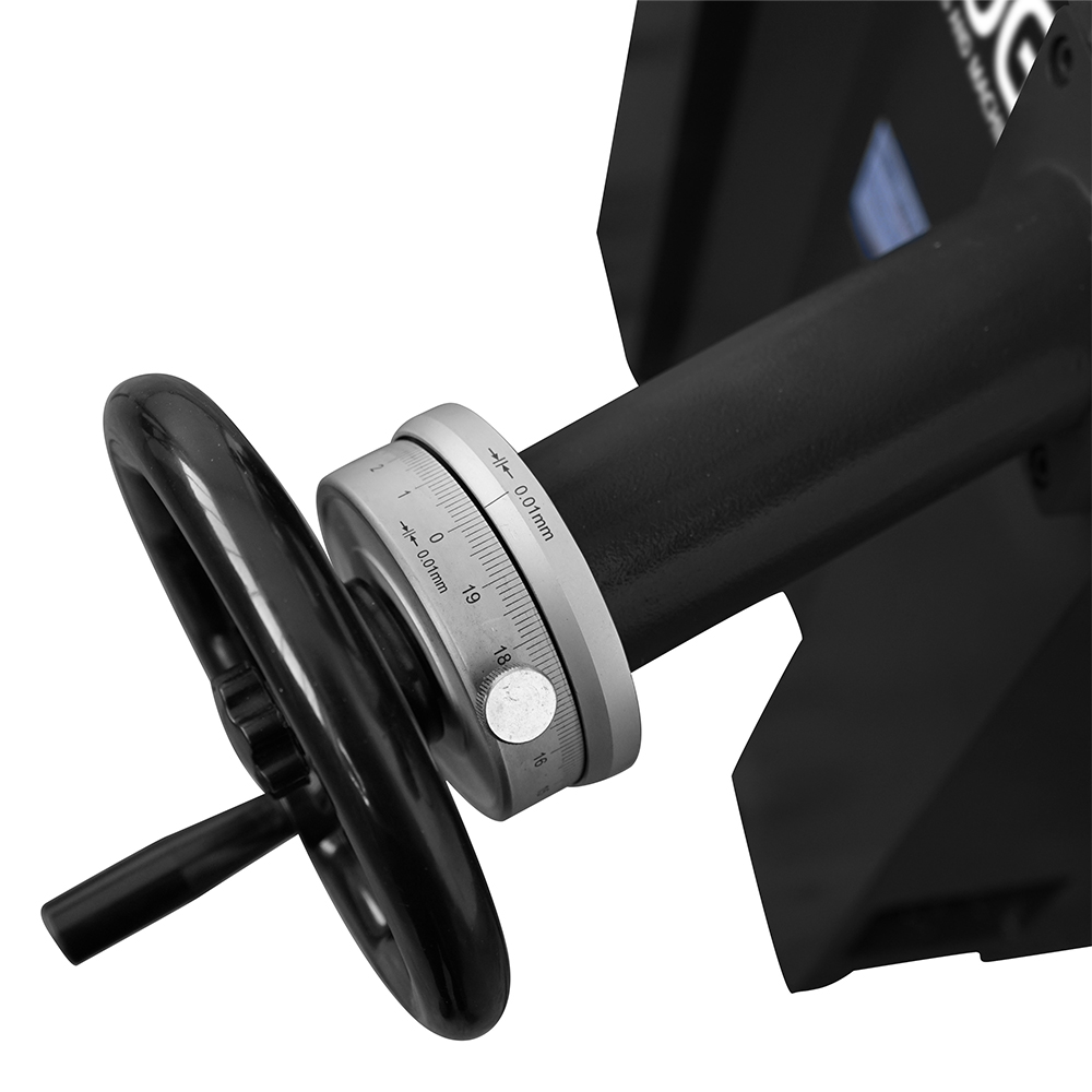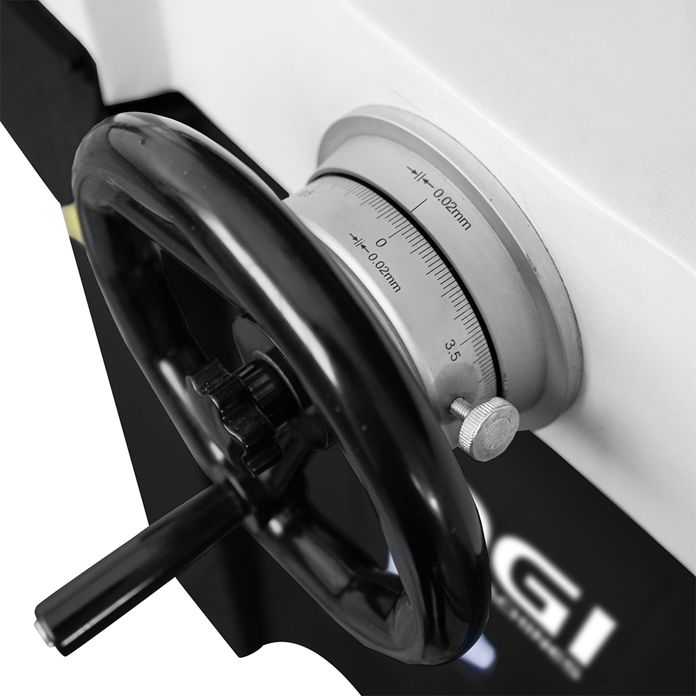 La tavola scorre lungo delle guide a "V" con pattini a ricircolo di sfere e raschiaolio lubrificate da una centralina ad intermittenza azionata da apposita leva. I moti longitudinale e trasversale della tavola, così come il moto verticale del mandrino portamola, sono a controllo manuale esplicabile tramite appositi volantini dall'impugnatura ergonomica.