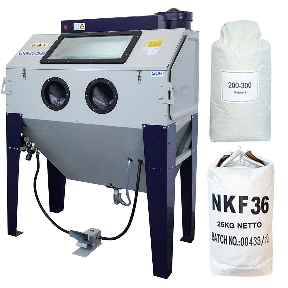 Sabbiatrice SOGI S-120 + sacco 25 kg di corindone grana 36 + 25 kg microsfere vetro grana 200/300