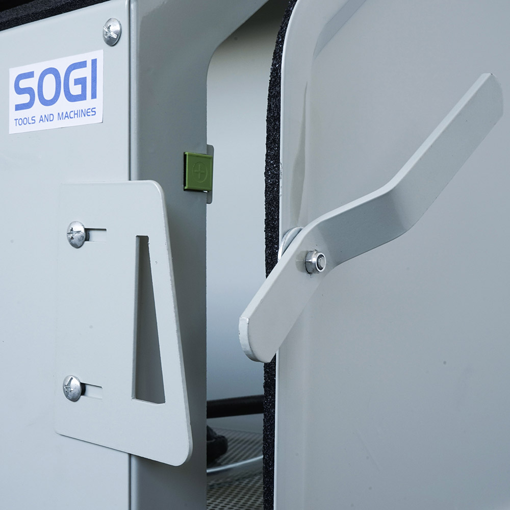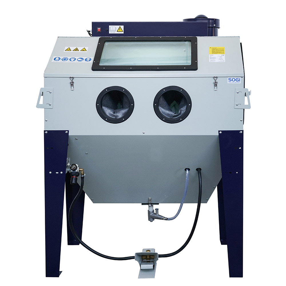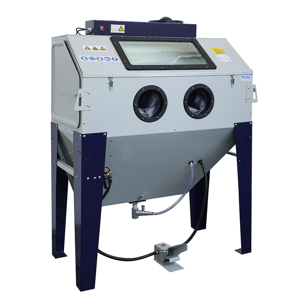 La sabbiatrice SOGI S-120 è una macchina professionale dotata di aspiratore con battifiltro integrato, modello con apertura forntale superiore e laterale. La macchina è dotata di certificazione a norma CE.