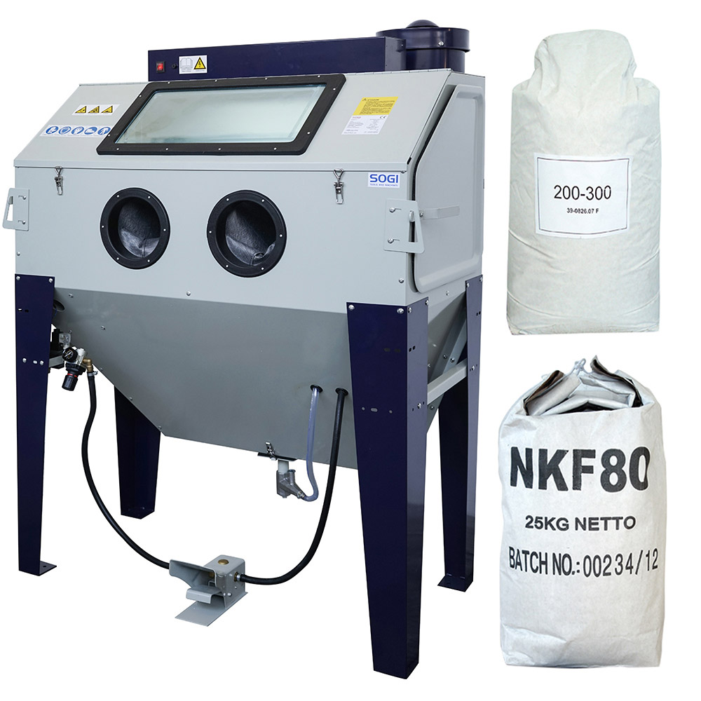 Sabbiatrice SOGI S-120 + sacco 25 kg di corindone grana 80 + 25 kg microsfere vetro grana 200/300
