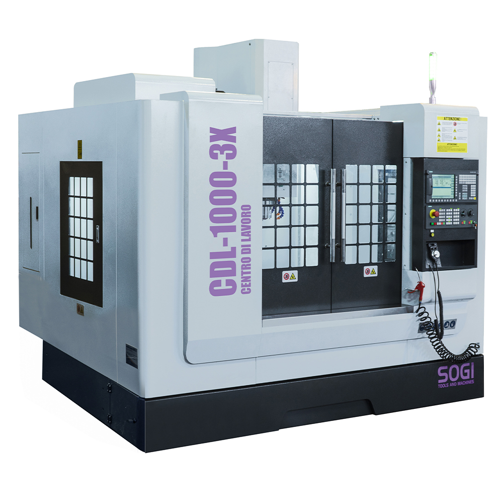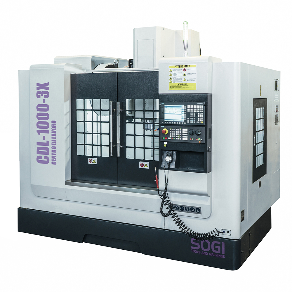 Il centro di lavoro verticale SOGI CDL-1000-3X è una macchina a controllo numerico a tre assi in grado di effettuare molteplici lavorazioni su materiali metallici e leghe derivate, materiali polimerici e molto altro. Grazie alla sua versatilità d'utilizzo, la macchina si presta particolarmente bene ad un impiego nel campo industriale e prototipazione per la messa a punto di componenti più o meno complessi garantendo un'elevata precisione nel risultato (giunti, alberi di trasmissione ecc.).