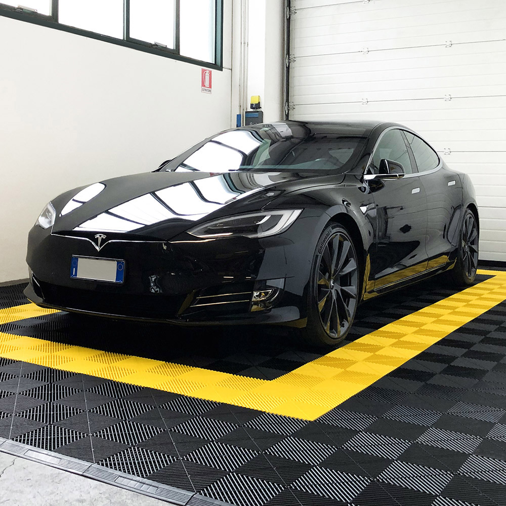 La piastrella SOGI PAV-03-GI è un rivestimento in polipropilene (PP), dalla texture ad effetto drenante: fluidi, polveri e detriti di piccole dimensioni trapassano la mattonella che dunque rimane sempre pulita e asciutta. É particolarmente indicato per pavimentare garage, centri car detailing, autofficine, autosaloni, box, fiere, capannoni, centri sportivi, ed in tutte quelle operazioni dove impatto visivo e resa estetica, ma anche resistenza e durevolezza sono un must.