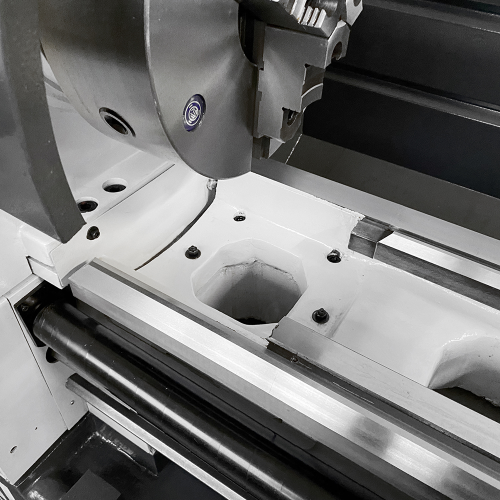 Sul bancale prismatico in ghisa meehanite munito di nervature di rinforzo e tassello estraibile, le guide sono state rettificate e temprate, trattamenti volti ad aumentare durezza e durabilità dell'acciaio nel tempo. Le slitte che scorrono lungo le guide sono realizzate per mezzo di lavorazioni di precisione e sono regolabili tramite appositi lardoni conici.