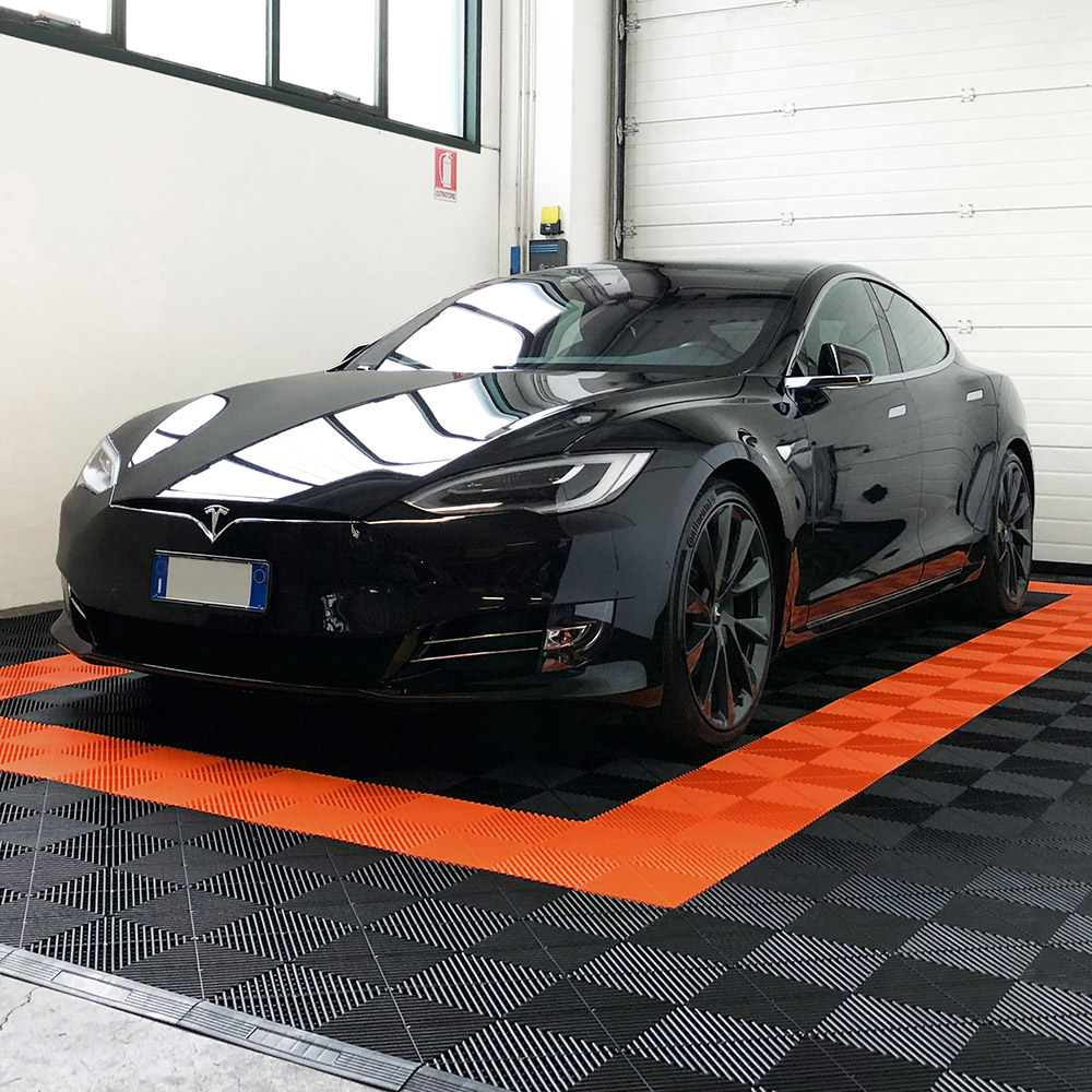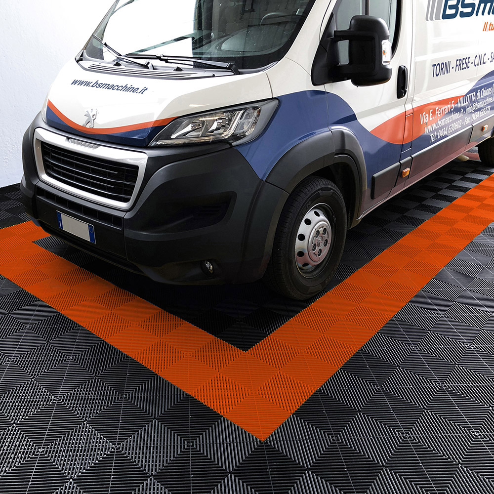 Kit da 625 piastrelle 100 mq SOGI PAV-03-AR_4 in PP per pavimento officina e garage - colore arancione