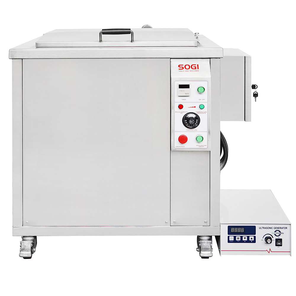 La vasca di lavaggio SOGI VL-U1350RR è un pulitore ad ultrasuoni in grado di eliminare i contaminanti e lo sporco di ogni genere dalle superfici di pezzi anche di medie/grandi dimensioni quali testate di motori, carburatori, valvole, iniettori, cuscinetti, ingranaggi, eliche, coclee, schede elettroniche e componenti meccanici più in generale. Si tratta di una macchina ad alto potere pulente, che rende le operazioni di lavaggio semplici, veloci e precise.