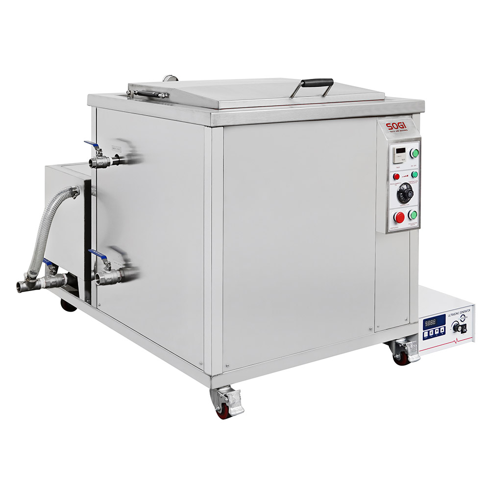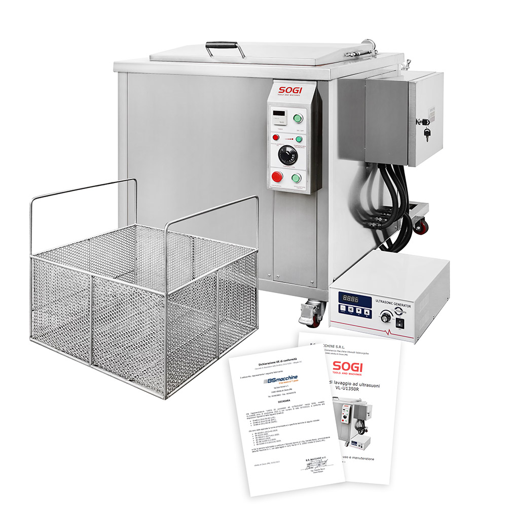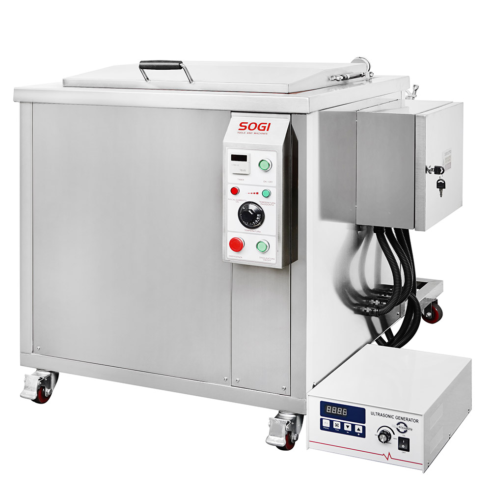 La peculiarità del pulitore ad ultrasuoni SOGI VL-U1350RR risiede nel sistema di ricircolo annesso, costituito da disoleatore a decantazione ed apposito filtro a cartuccia. Questi componenti aggiuntivi consentono prestazioni elevate ed un risparmio economico notevole grazie al riutilizzo del fluido impiegato, che viene costantemente depurato e reimmesso in vasca per mezzo di una pompa multistadio.