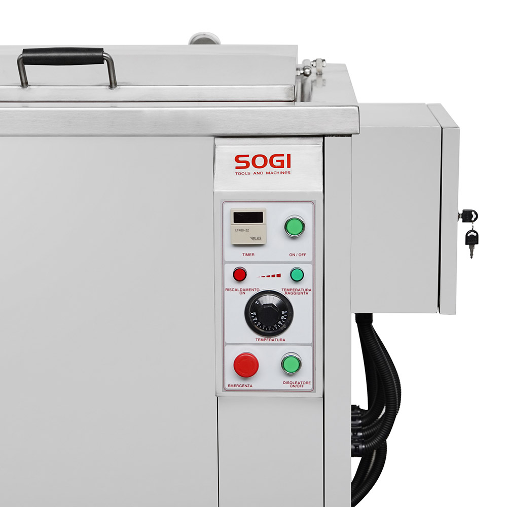 La vasca ad ultrasuoni riscaldata SOGI VL-U1350RR è realizzata interamente in acciaio inox AISI304: la scelta di tale materiale assicura un’elevata resistenza alla corrosione a seguito di contatto con oli, impurità varie e/o liquidi sgrassanti eventuali impiegati.