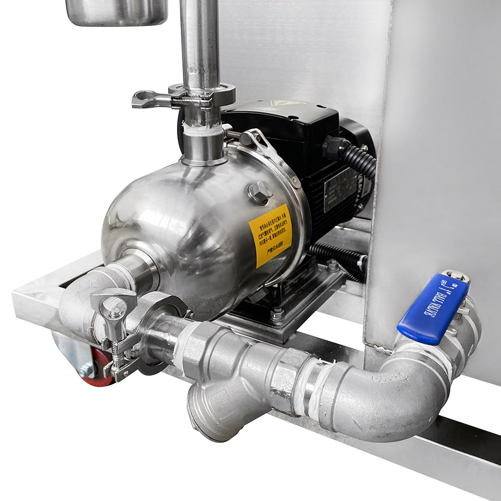 Completano la macchina quattro ruote pivotanti, due posteriori e due anteriori con freno, per facilitare le operazioni di movimentazione/installazione del macchinario.