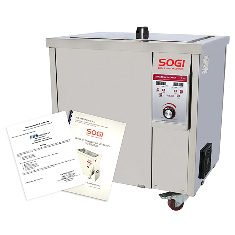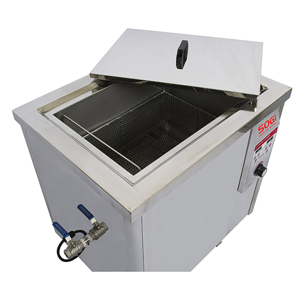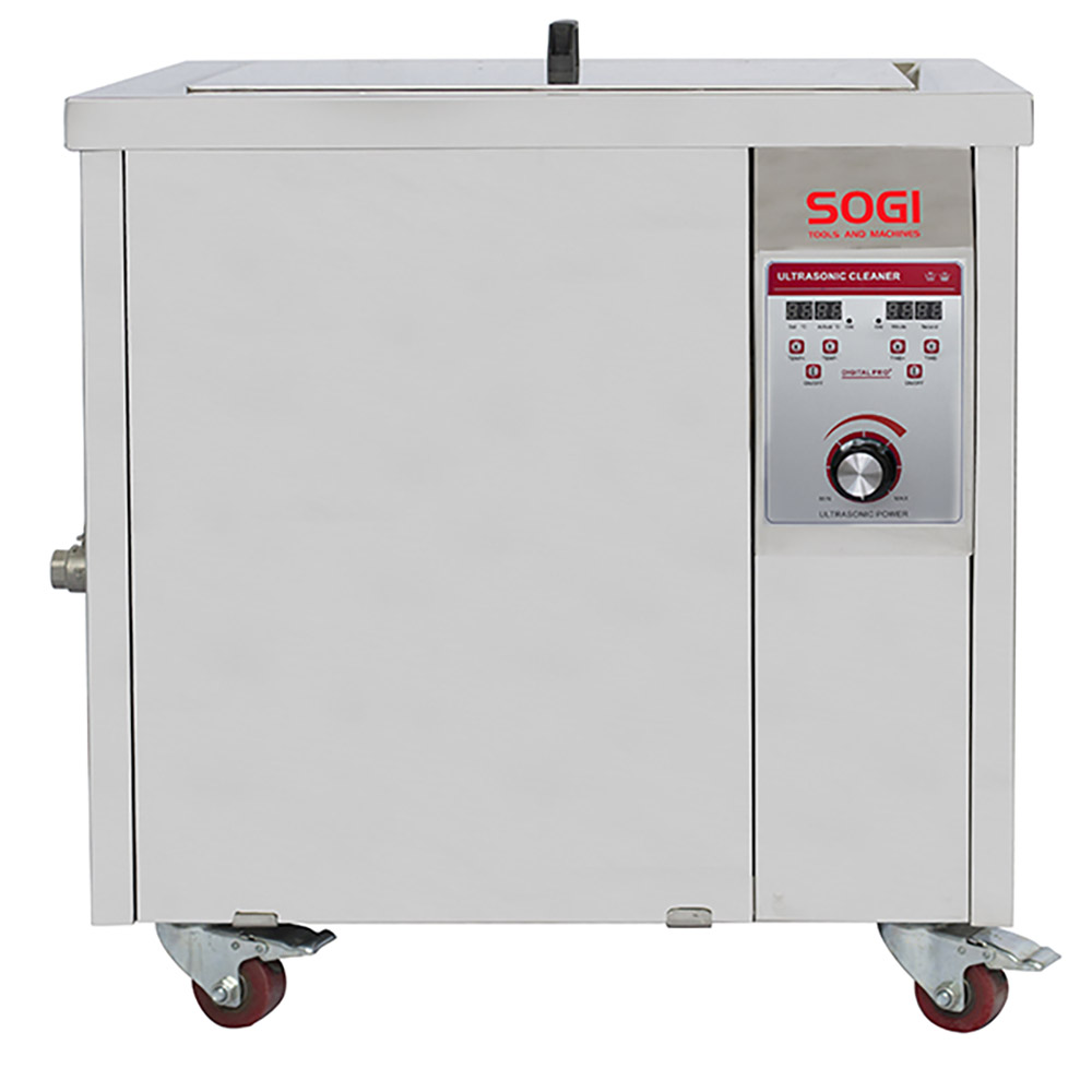 La vasca di lavaggio a ultrasuoni SOGI VL-U5300R è realizzata interamente in acciaio inox per contrastare la corrosione dei solventi o liquidi sgrassanti utilizzati durante il lavaggio dei pezzi. É inoltre dotata di riscaldamento con un massimo di 80° Celsius. Predisposta di ventola di raffreddamento per il sistema di alimentazione.