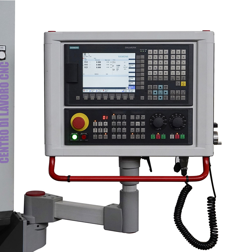 La mini fresatrice CNC SOGI S2-80C vanta di serie un pannello di comando con le moderne funzionalità del SIEMENS SINUMERIK 808D ADVANCED. Il pannello operatore è realizzato in pressofusione di magnesio ad alta resistenza e comprende: un display a colori da 8,4”, una tastiera CNC completa QWERTY e due interfacce, una USB, l’altra Ethernet sul frontalino.