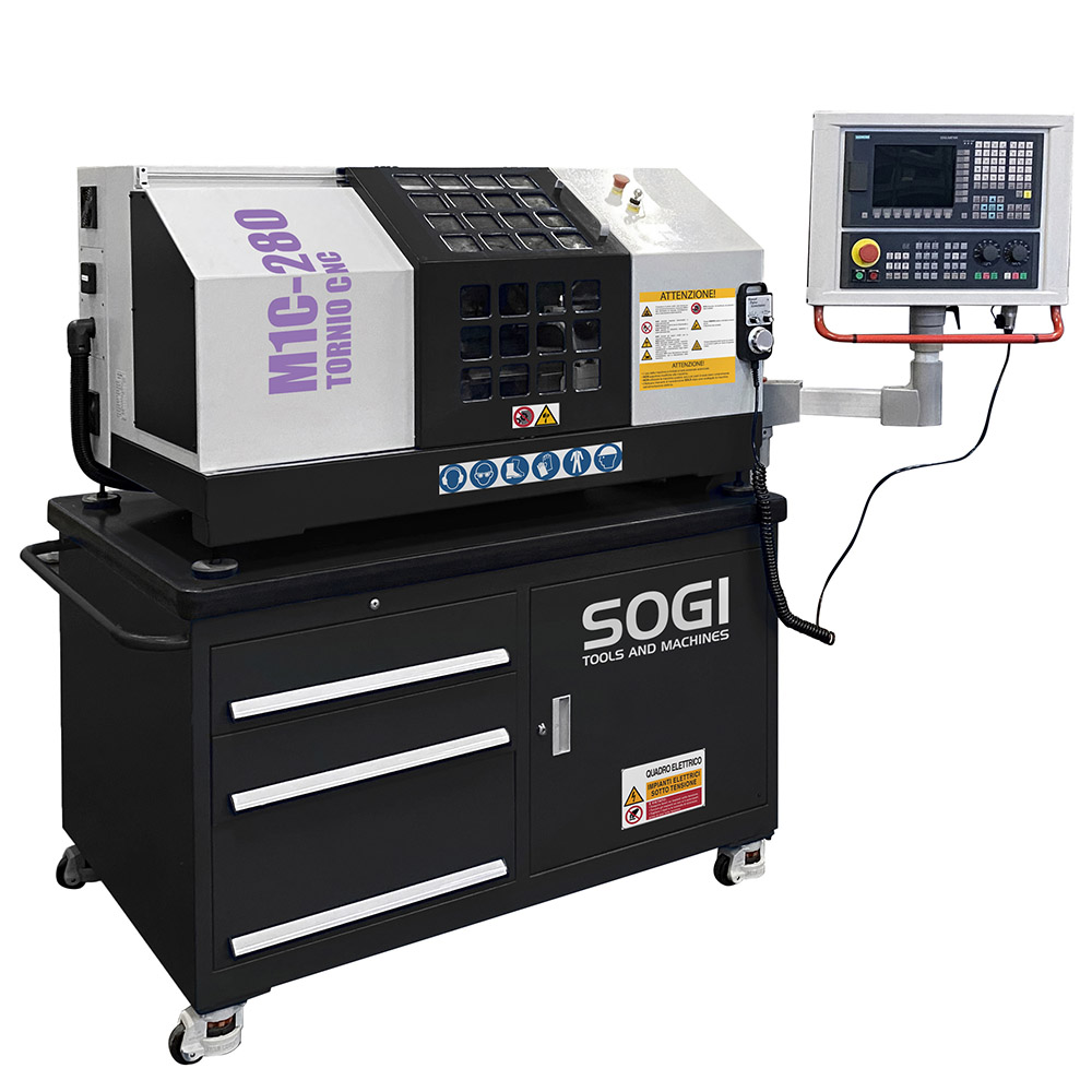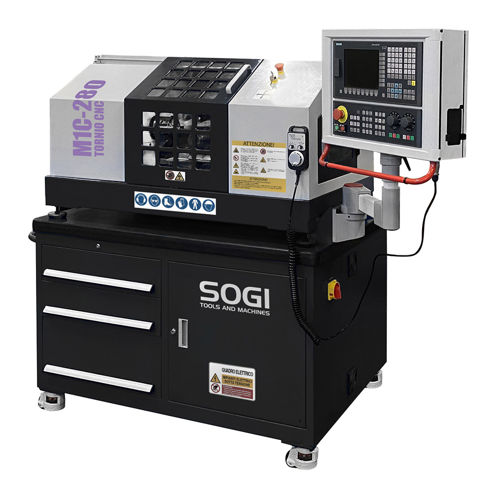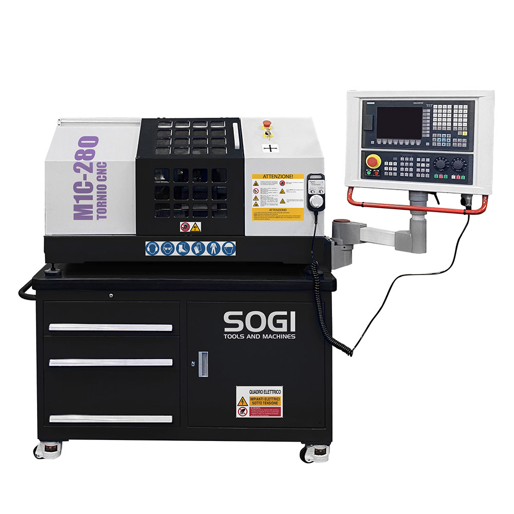 Il tornio ad autoapprendimento CNC SOGI M1C-280 è una macchina a controllo numerico in grado di effettuare molteplici lavorazioni su materiali metallici e leghe derivate, materiali polimerici e molto altro. Date le sue dimensioni contenute e l’indiscussa semplicità di utilizzo, è particolarmente indicata per un impiego di prototipazione didattica e/o per corsi di formazione.