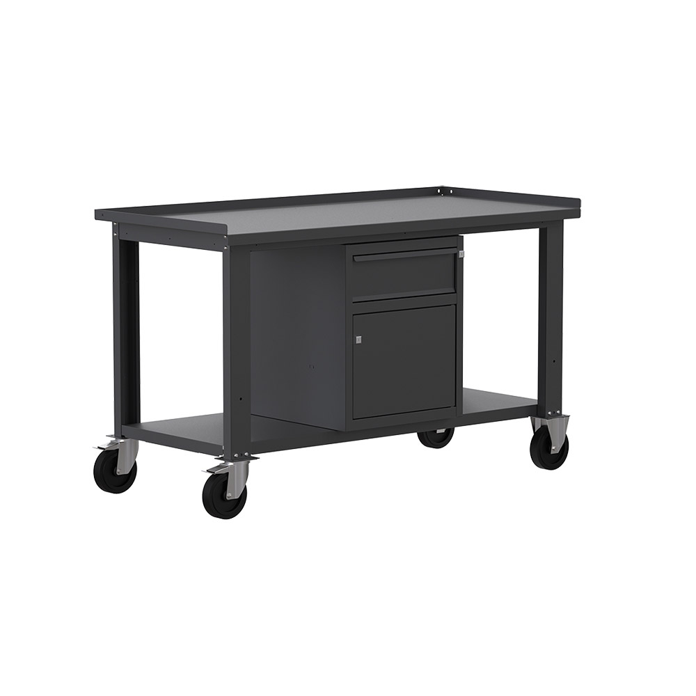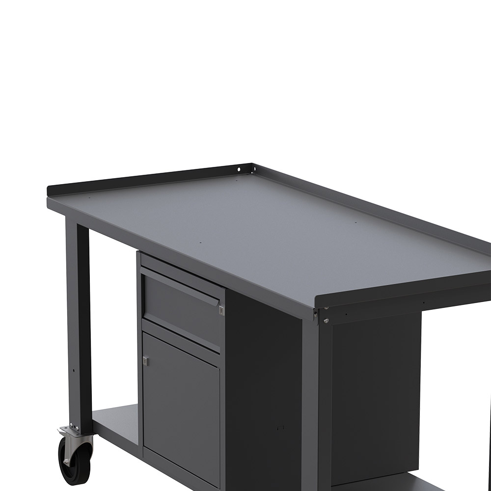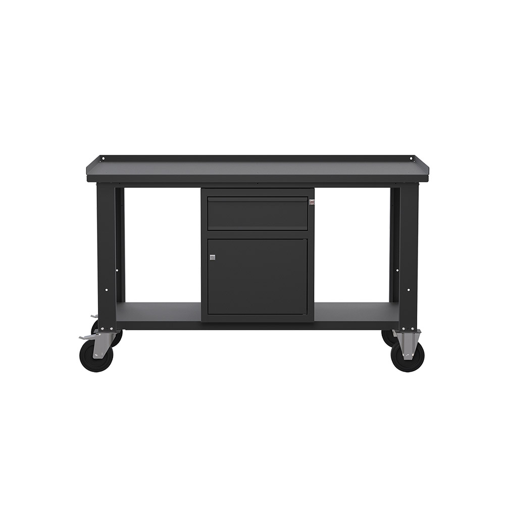 Banco da lavoro con ruote SOGI X3N_103AR - 1.5 m - piano in acciaio - armadio con anta e cassetto
