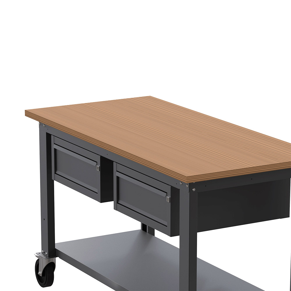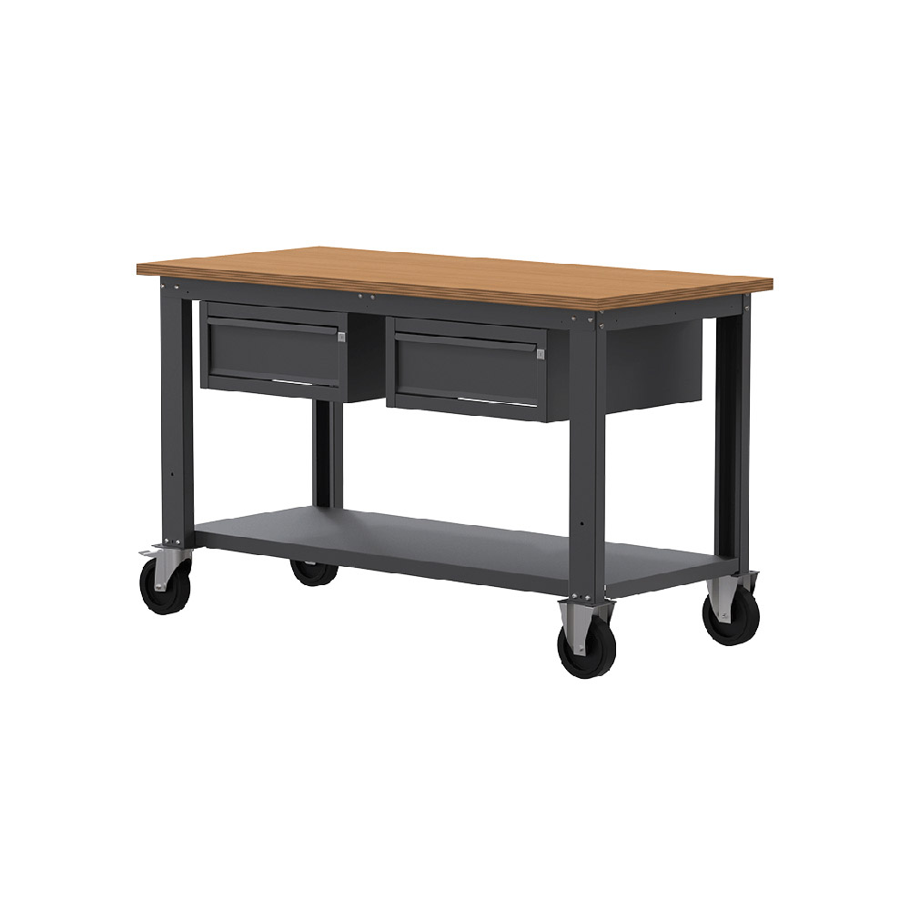 Banco da lavoro con ruote SOGI X3N_105LR- 1.5 m - piano in legno - 1 + 1 cassetti - grigio antracite
