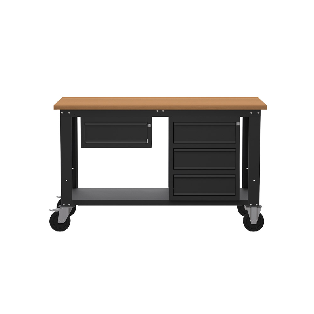 Banco lavoro con ruote SOGI X3N_106LR- 1.5 m - piano in legno - 1 + 3 cassetti - grigio antracite