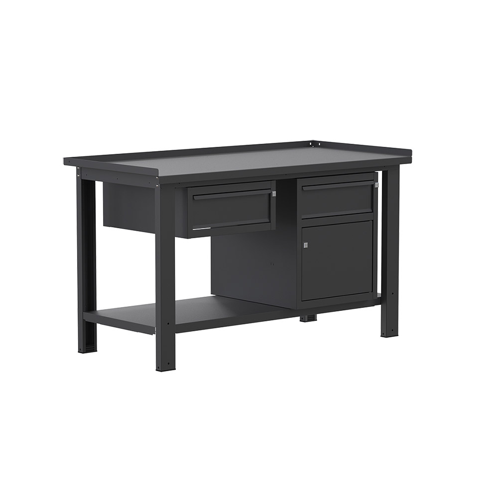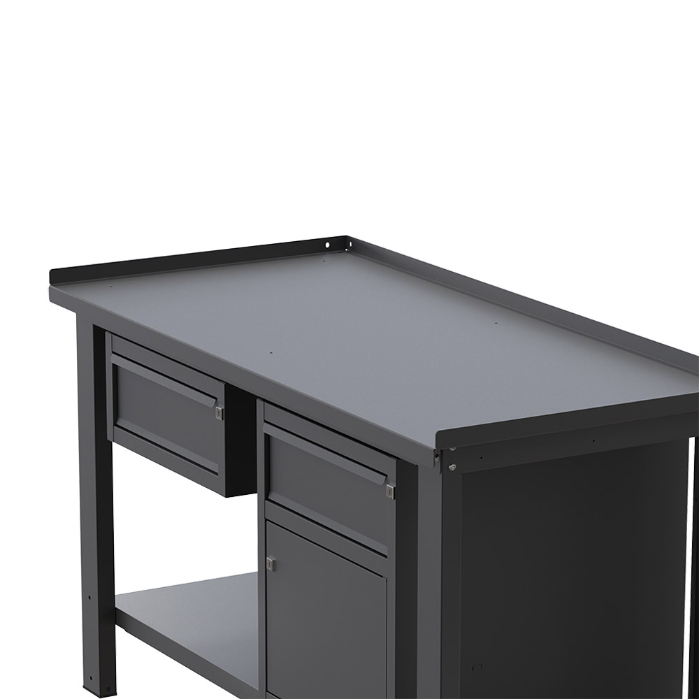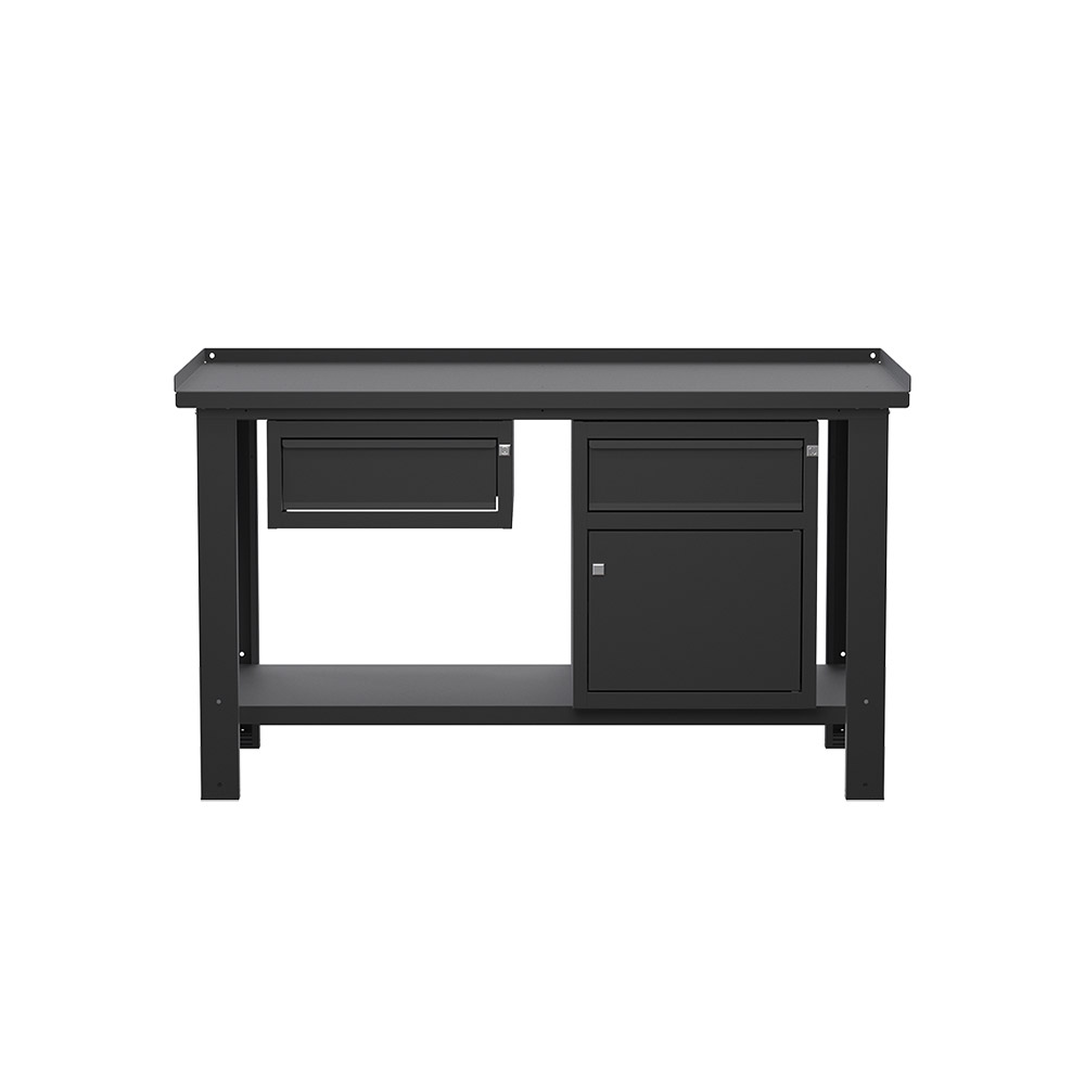 Banco lavoro SOGI X3N_107A - 1.5 m - piano in acciaio - 1 cassetto + armadio con anta e cassetto