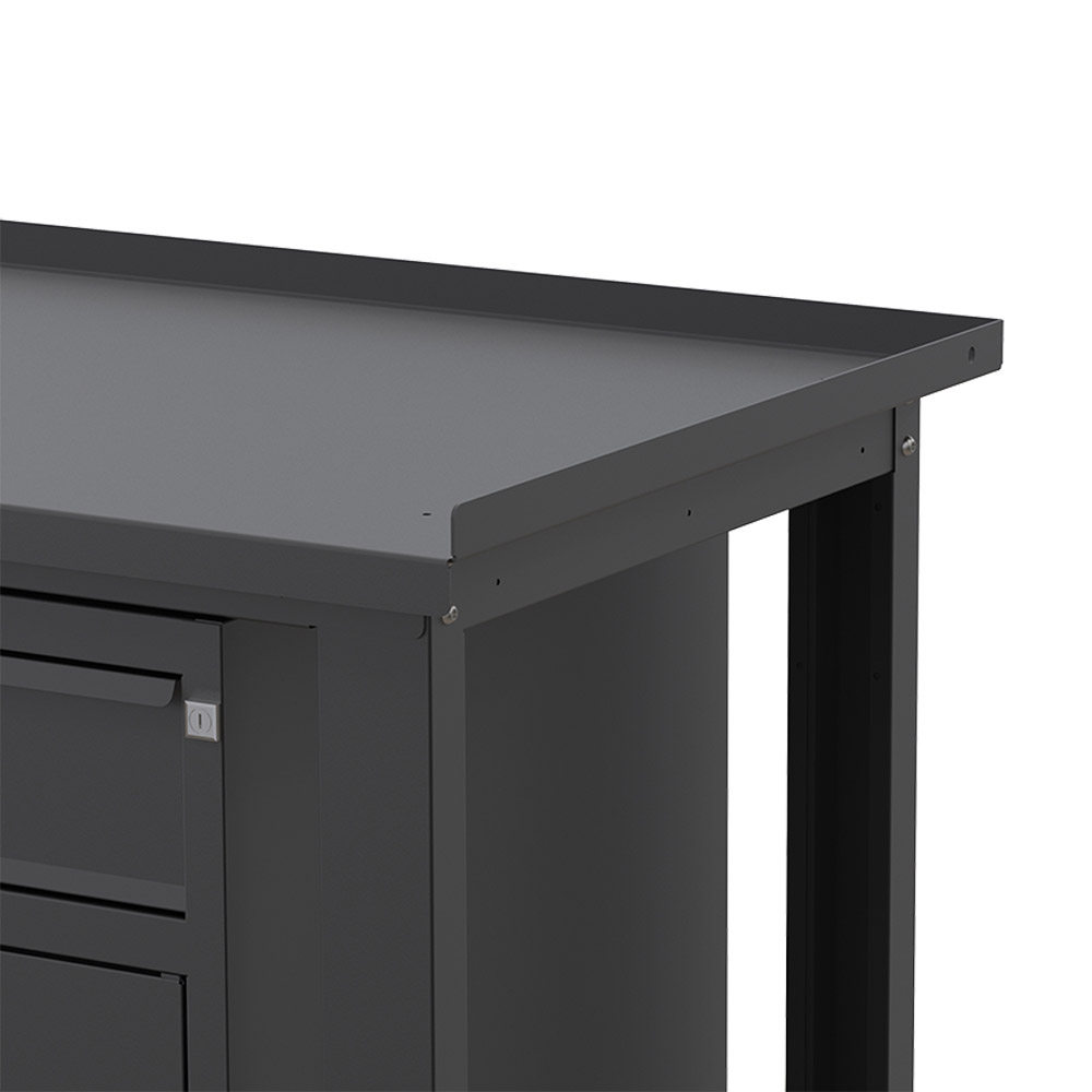 Il piano di lavoro, realizzato in lamiera spessa ben 3 mm, rappresenta la superficie di appoggio ideale in tutti quei lavori che richiedono elevata resistenza a corrosione, ristrette condizioni igieniche, ottima resistenza al calore ed alle macchie. Il banco da lavoro SOGI X3N_107A è totalmente verniciato a polveri nella colorazione grigio antracite (RAL 7016).