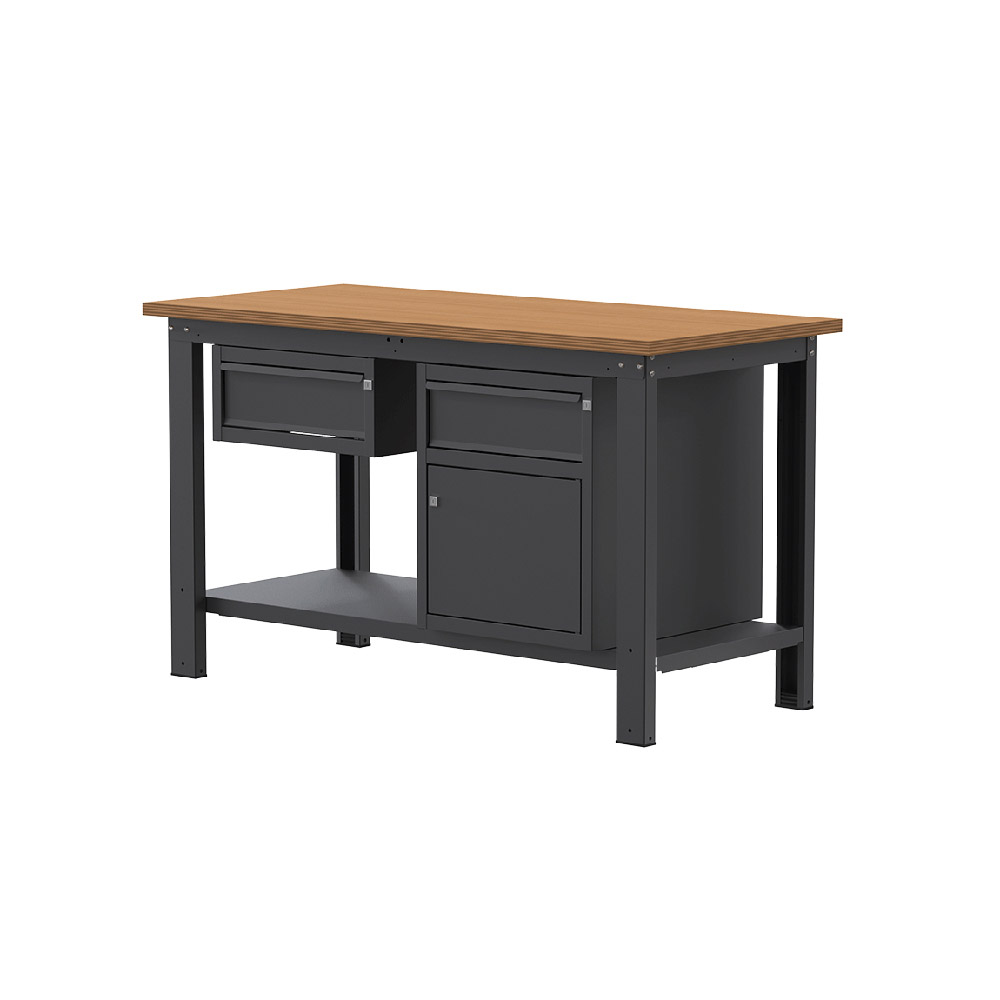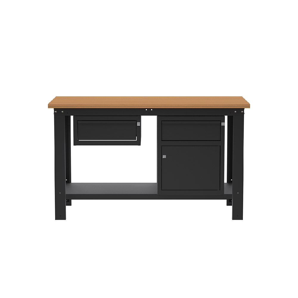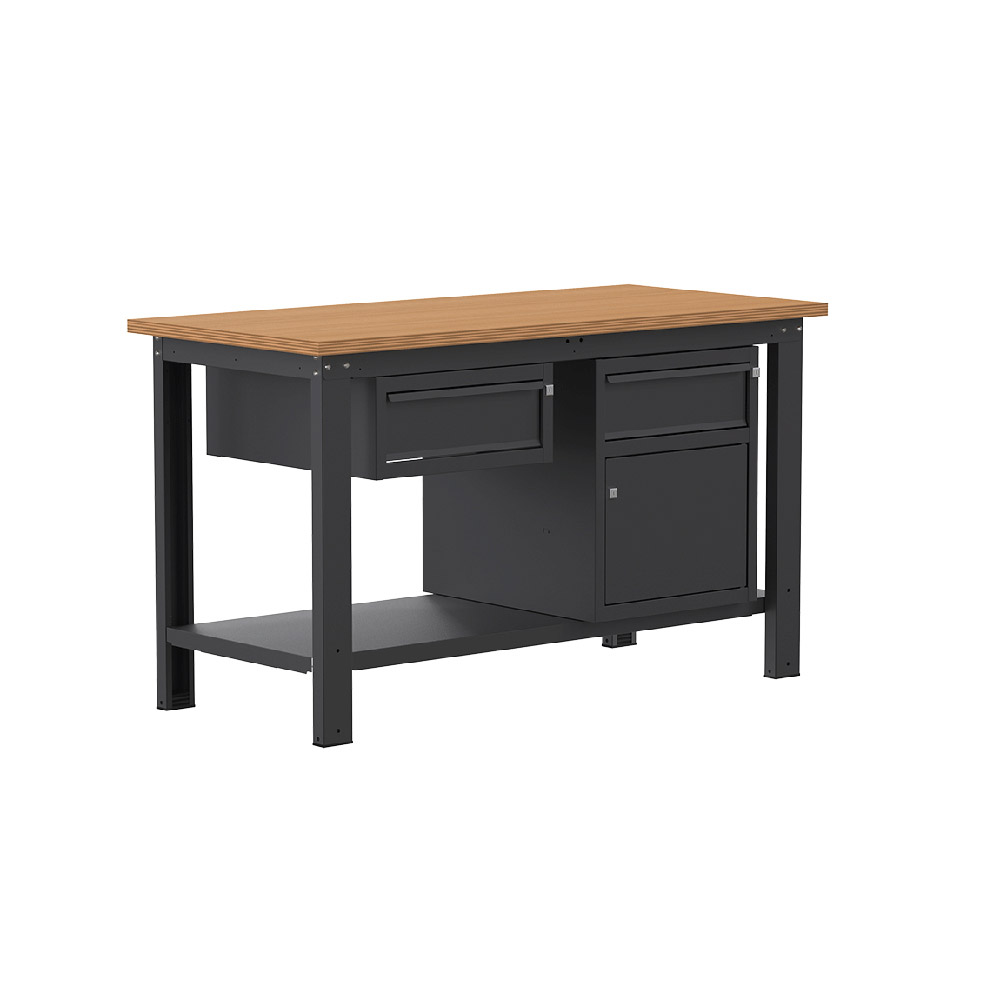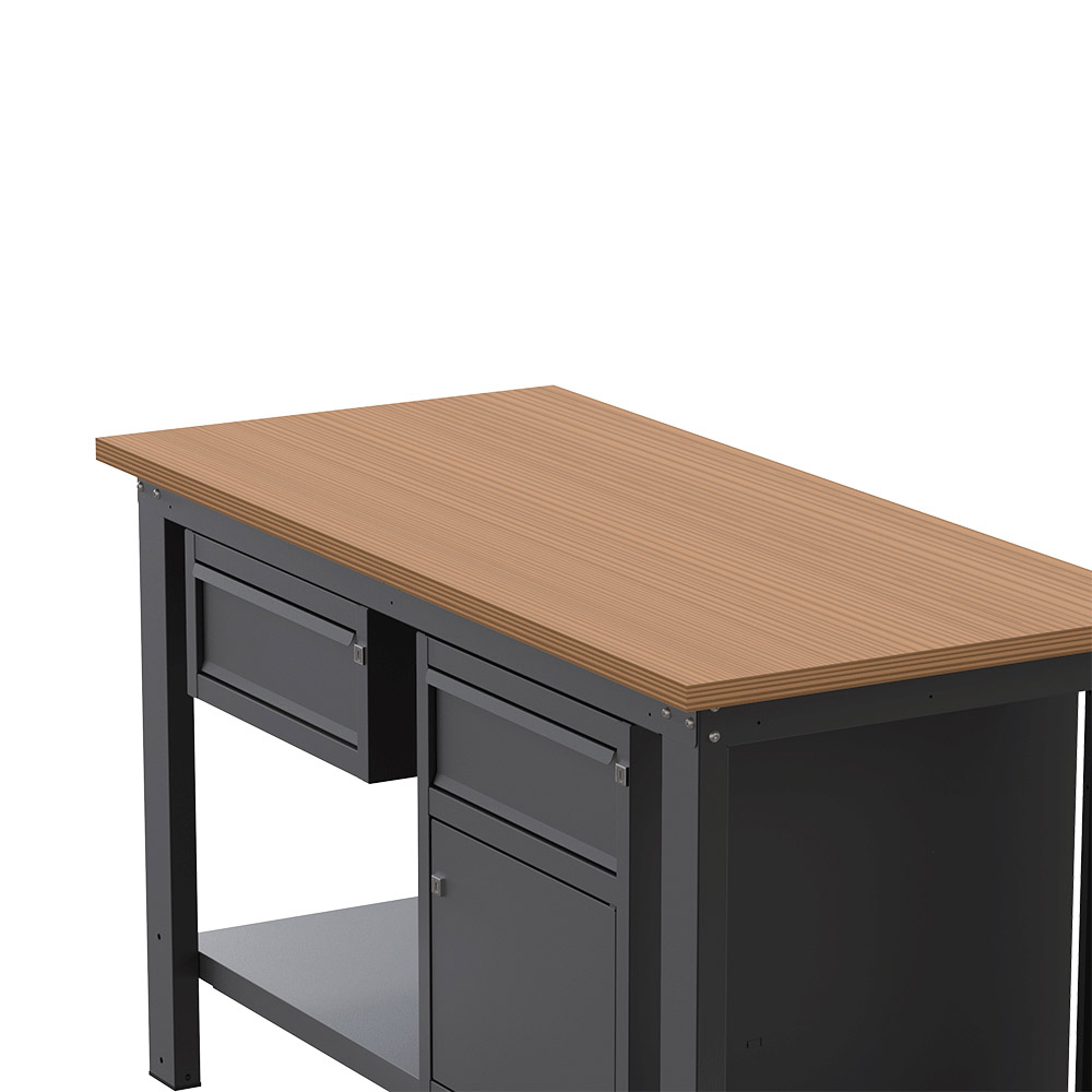 Banco lavoro SOGI X3N_107L - 1.5 m - piano in legno - 1 cassetto + armadio con anta e cassetto