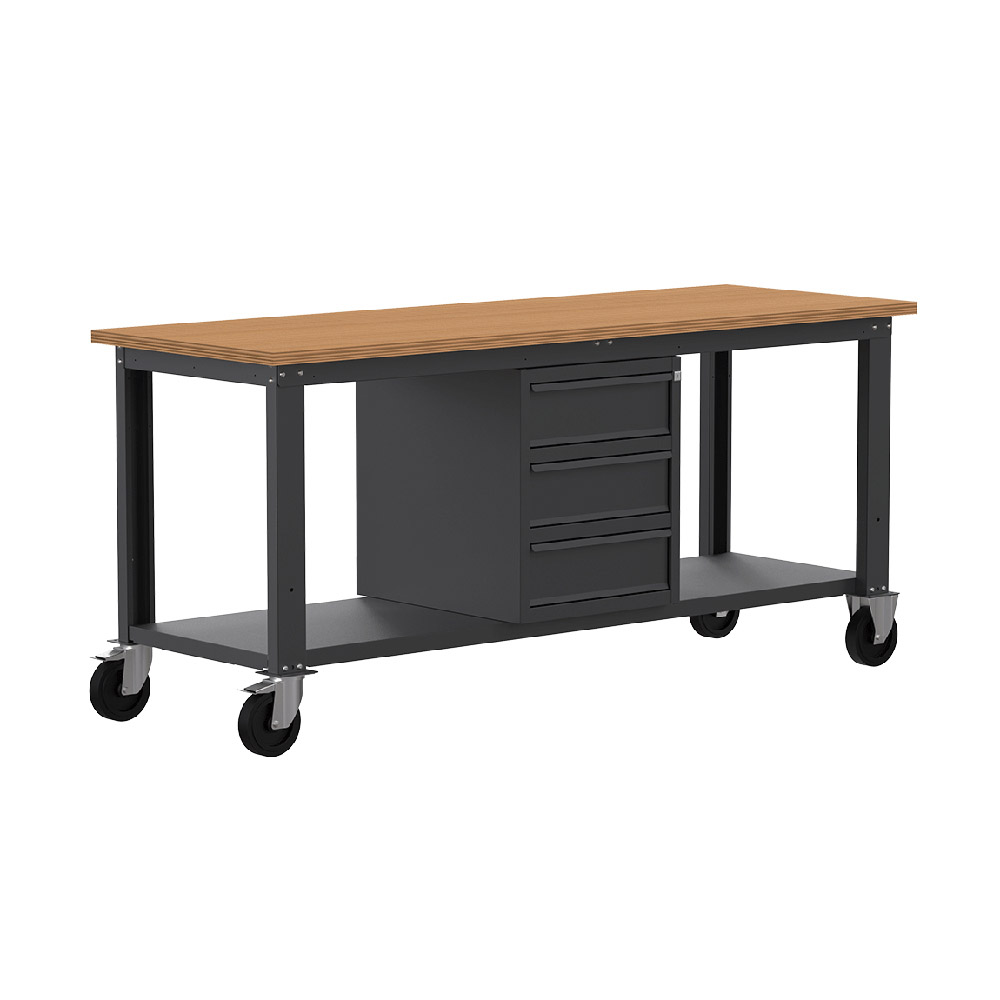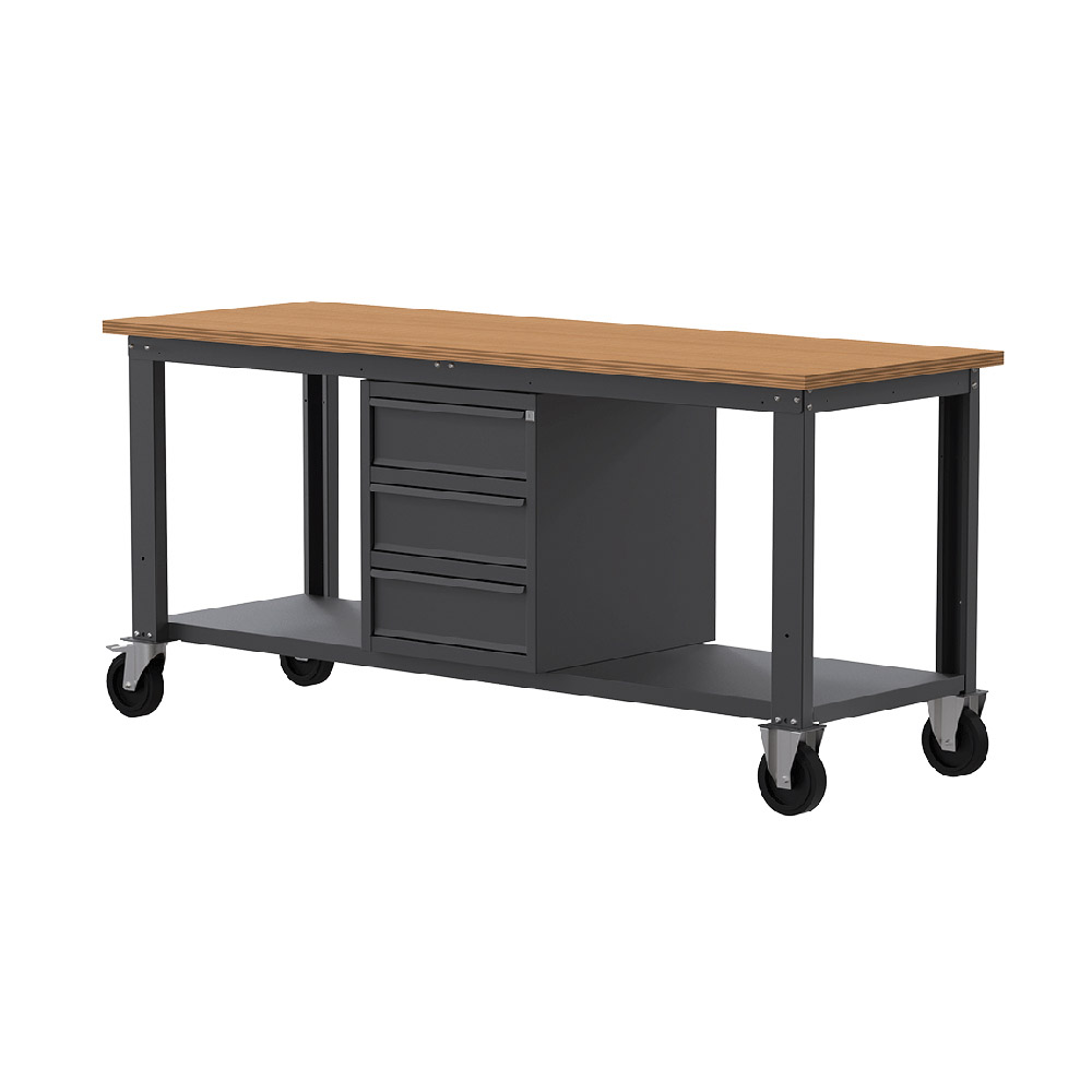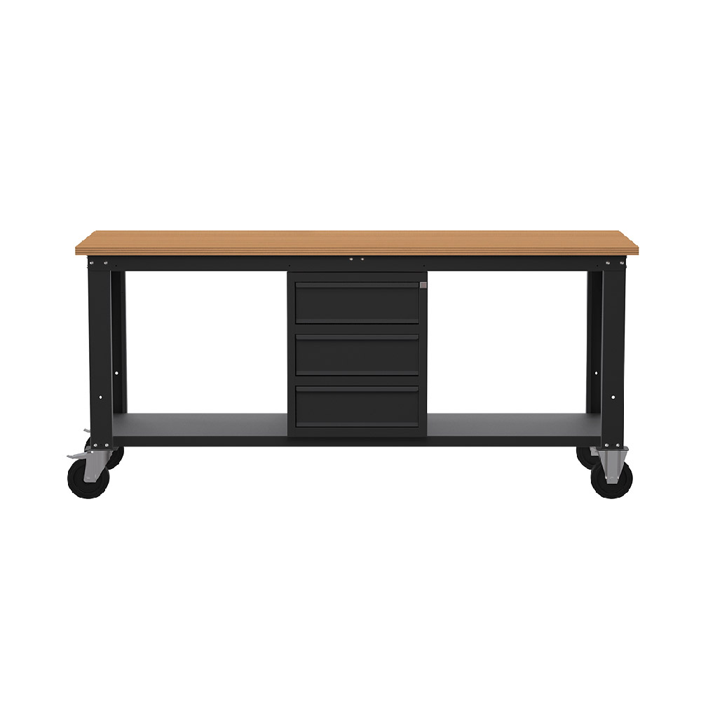 Banco da lavoro con ruote SOGI X3N_114LR - 2 m - piano in legno - 3 cassetti