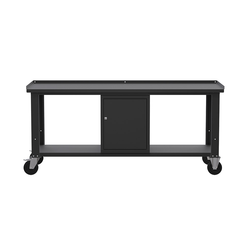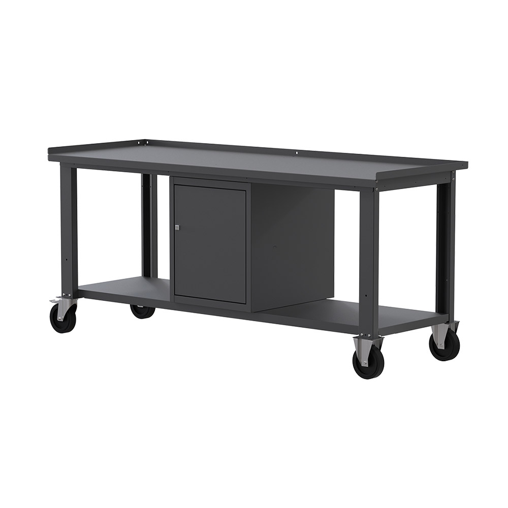 Banco da lavoro con ruote SOGI X3N_116AR - 2 m - piano in acciaio - armadio con anta
