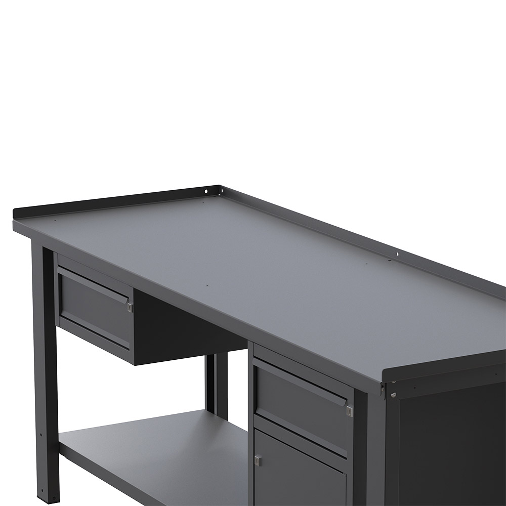 Banco lavoro SOGI X3N_119A - 2 m - piano in acciaio - 1 cassetto + armadio con anta e cassetto