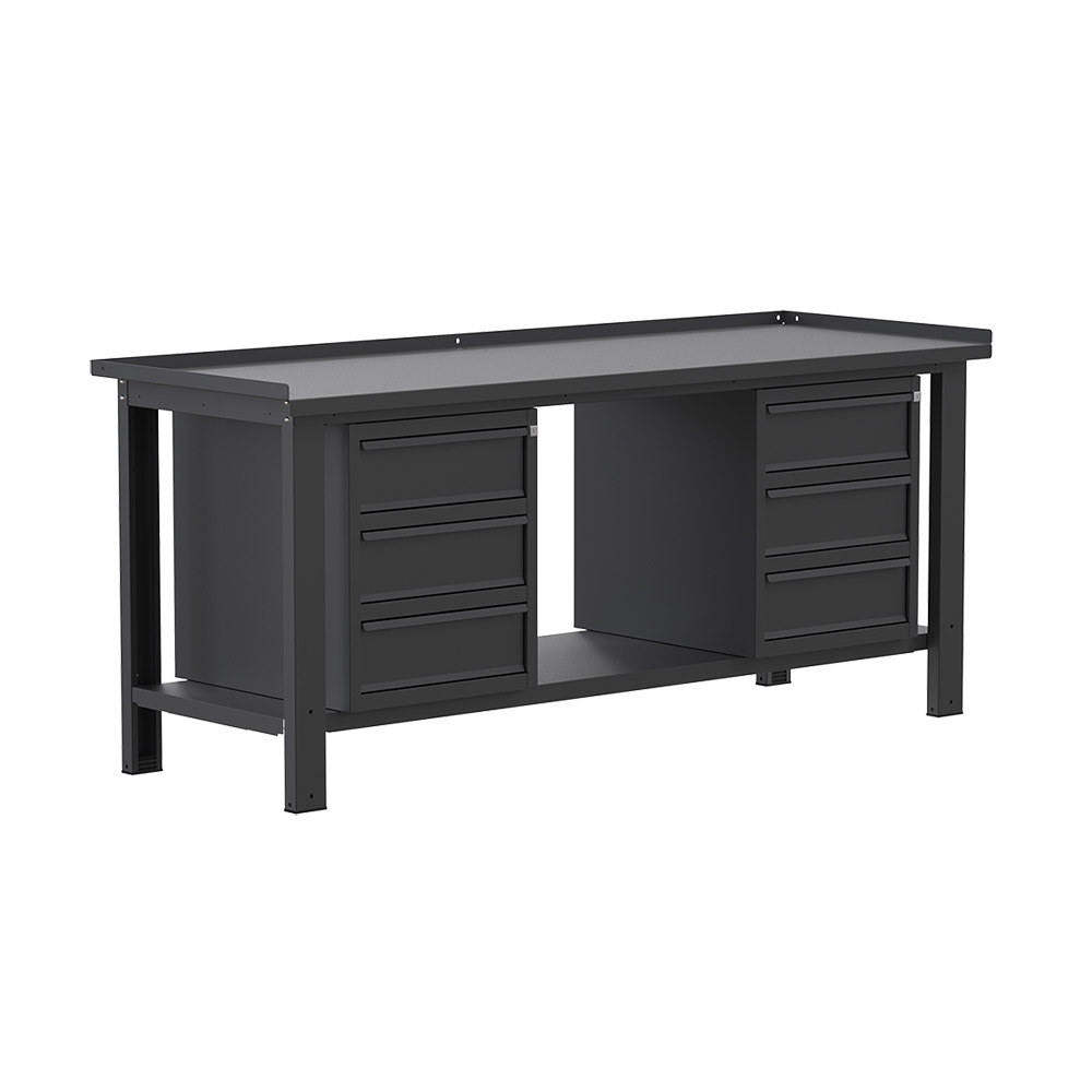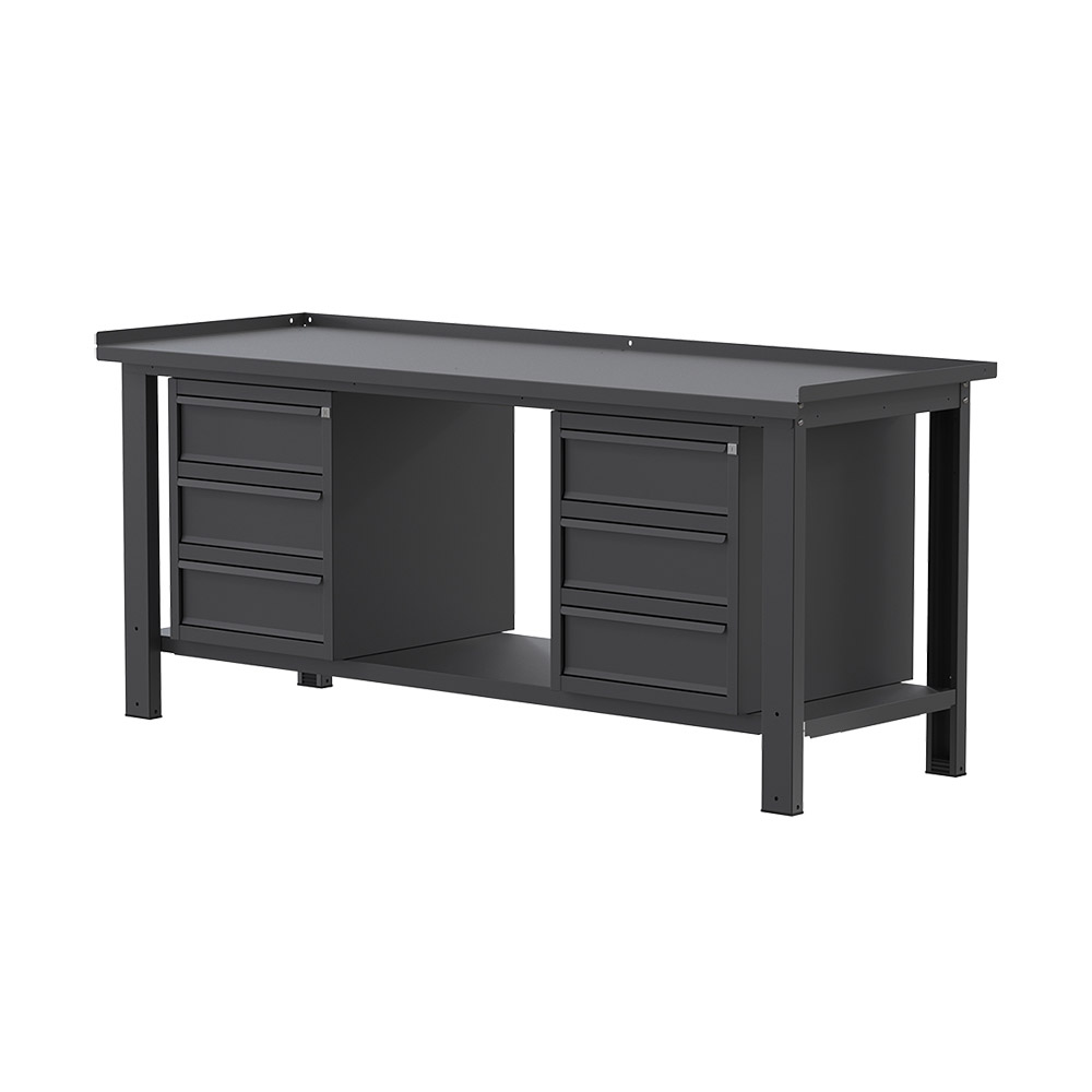Banco da lavoro SOGI X3N_120A - 2 m - piano in acciaio - 3 + 3 cassetti - grigio antracite