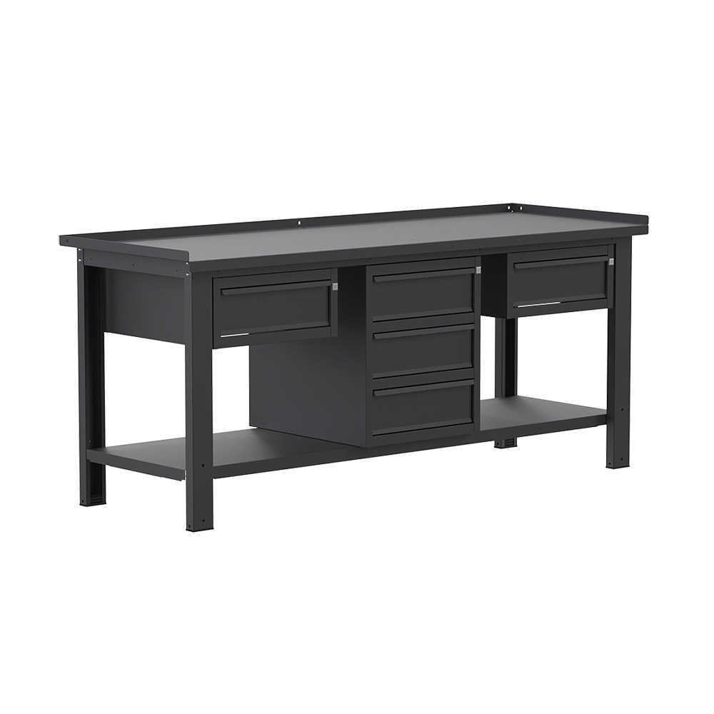 Banco da lavoro SOGI X3N_125A - 2 m - piano in acciaio - 1 + 3 + 1 cassetti