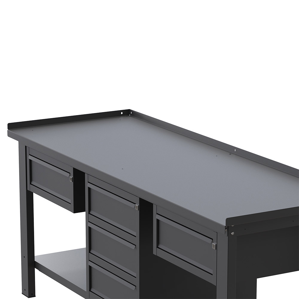 Il piano di lavoro, realizzato in lamiera spessa ben 3 mm, rappresenta la superficie di appoggio ideale in tutti quei lavori che richiedono elevata resistenza a corrosione, ristrette condizioni igieniche, ottima resistenza al calore ed alle macchie. Il banco da lavoro SOGI X3N_125A è totalmente verniciato a polveri nella colorazione grigio antracite (RAL 7016).