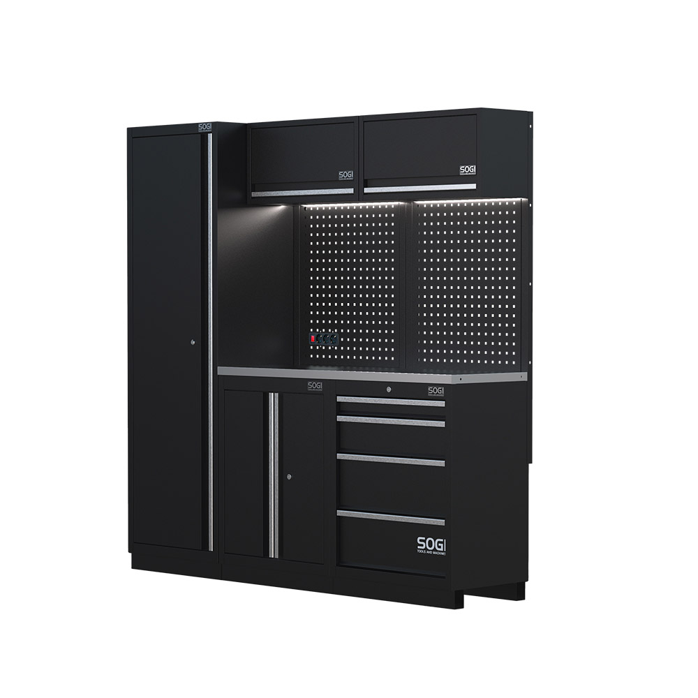 Il suo punto di forza è la modularità: ciò consente a chi decide di acquistare questo innovativo arredamento di scegliere come combinare i diversi moduli per rispondere alle più svariate esigenze. Che si tratti di un'officina, un garage o una carrozzeria, sarà possibile disporre i diversi elementi che compongono l'arredo SOGI ARR-OFF-1960 come si vuole.