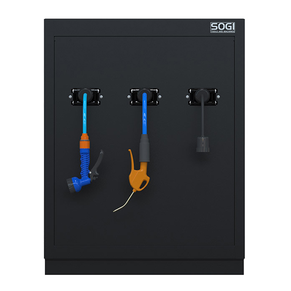 Realizzato in lamiera di acciaio verniciata a polveri, l'armadietto basso SOGI ARR-M-AEA vanta al suo interno ben due avvolgitubo, uno per l'acqua, l'altro per l'aria compressa, ed un avvolgicavo elettrico, così da avere a portata di mano tutto l'occorrente per la lavorazione senza rinunciare al comfort ed alla sicurezza.