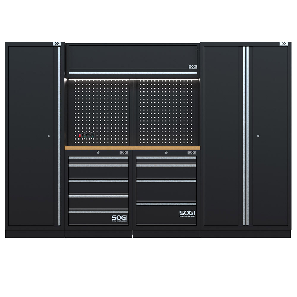 Arredamento modulare per officina e garage SOGI ARR-OFF-2875-L - piano in legno - 2875x465x2000 mm