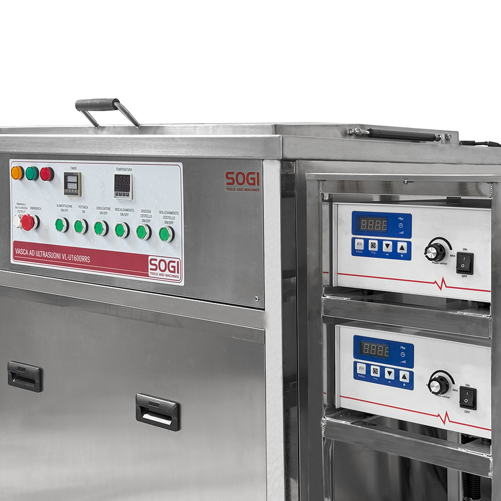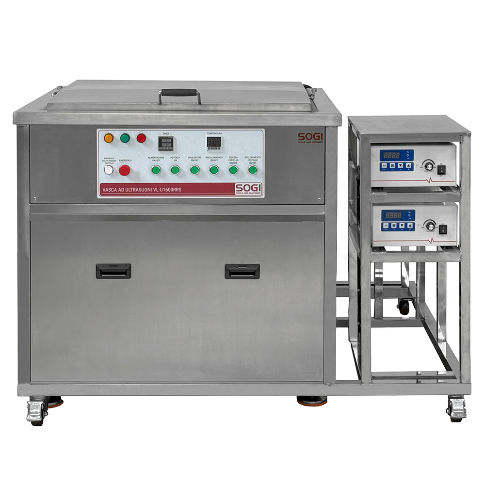 La vasca di lavaggio SOGI VL-U1600RRS è un pulitore ad ultrasuoni in grado di eliminare contaminanti e sporco di ogni genere dalle superfici di pezzi anche di medie/grandi dimensioni quali testate di motori, carburatori, valvole, iniettori, cuscinetti, ingranaggi, eliche, coclee, circuiti stampati, connettori e componenti meccanici più in generale. Si tratta di una macchina ad alto potere pulente, che rende le operazioni di lavaggio semplici, veloci e precise.