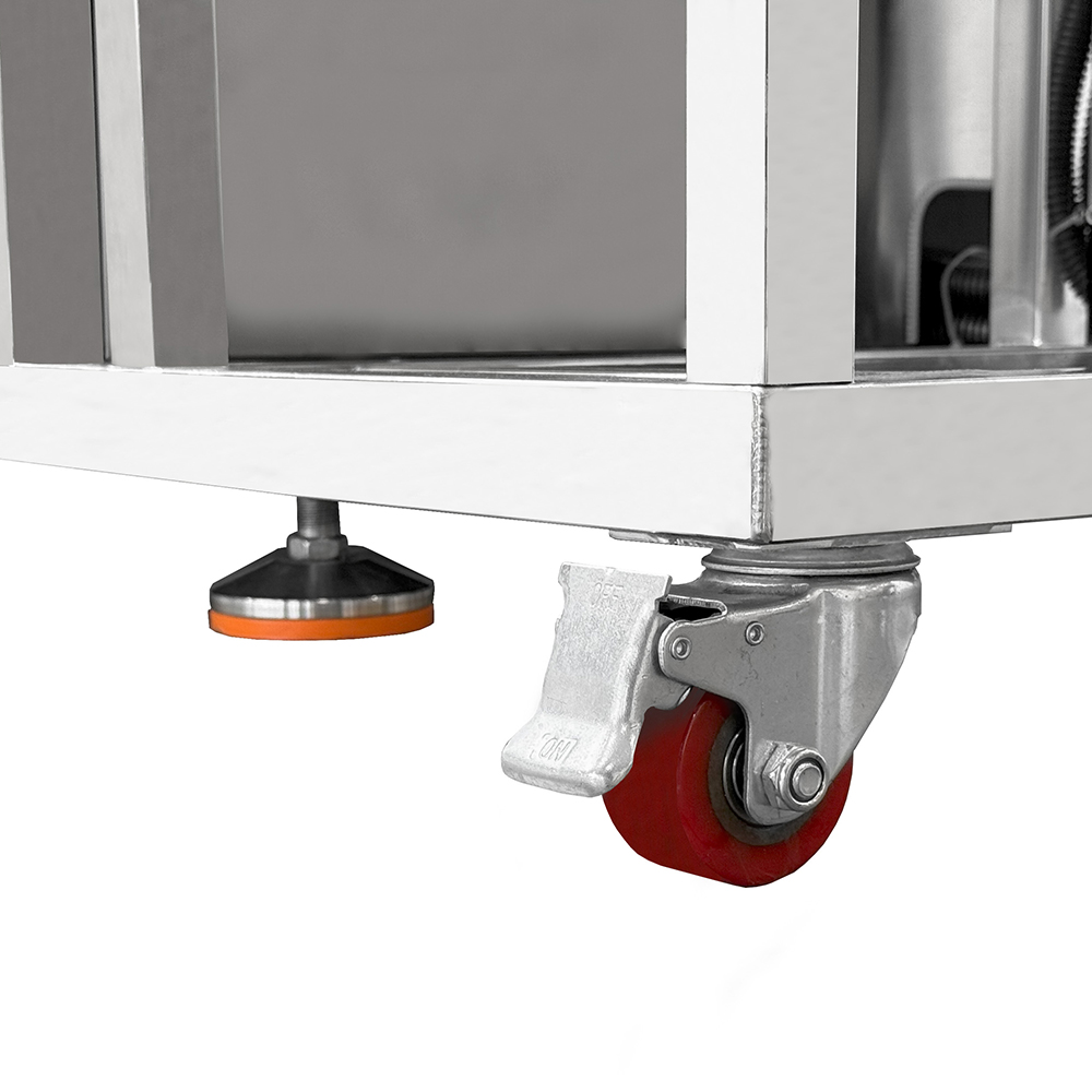 • Struttura di sostegno vasca con quattro ruote pivotanti (due posteriori, due anteriori con freno).