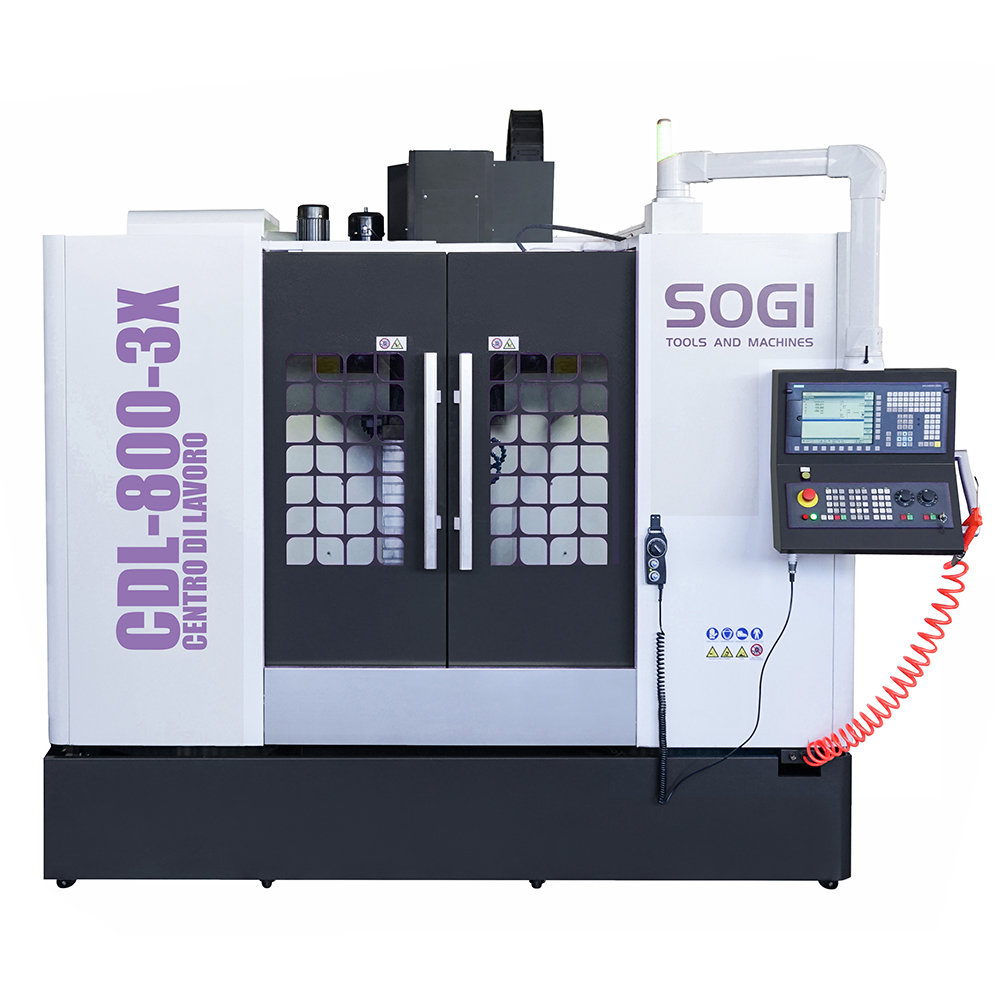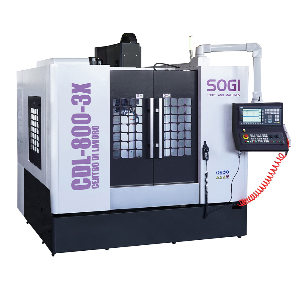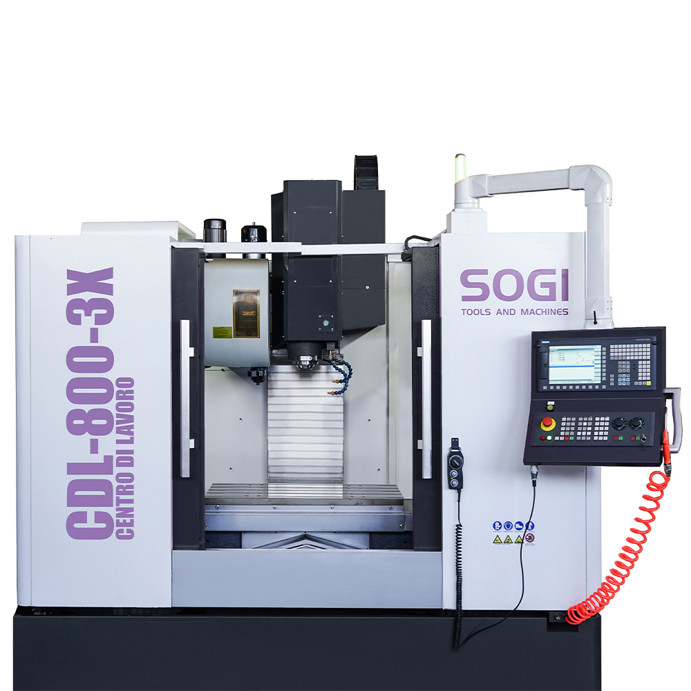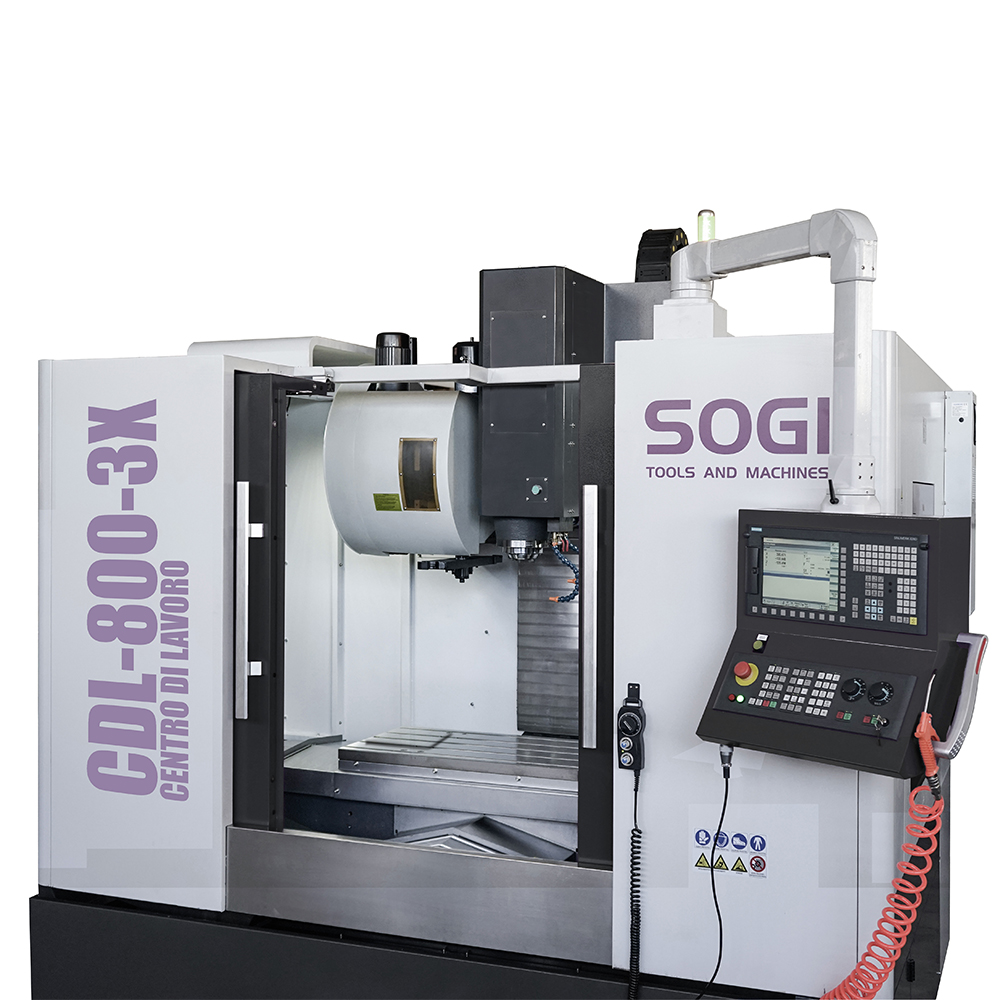 Il centro di lavoro verticale SOGI CDL-800-3X è una macchina a controllo numerico a tre assi in grado di effettuare molteplici lavorazioni su materiali metallici e leghe derivate, materiali polimerici e molto altro. Grazie alla sua versatilità d'utilizzo, la macchina si presta particolarmente bene ad un impiego nel campo industriale e prototipazione per la messa a punto di componenti più o meno complessi garantendo un'elevata precisione nel risultato (giunti, alberi di trasmissione ecc.).