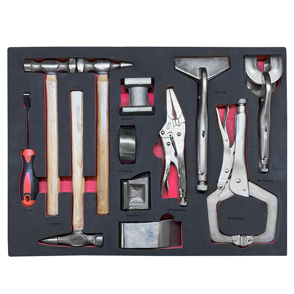 Assortimento di 12 utensili SOGI TER-12 - martelli e tassi da carrozziere - pinze grip autobloccanti - leverino