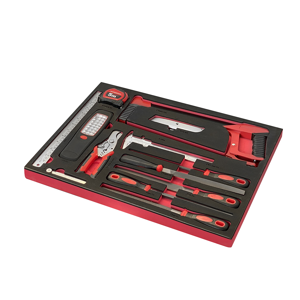 Vassoio morbido in EVA SOGI TER-17 da 13 utensili ideale per effettuare riparazioni e/o manutenzioni di motori, trasmissioni e/o freni di autovetture, che tu sia un professionista o un hobbista.