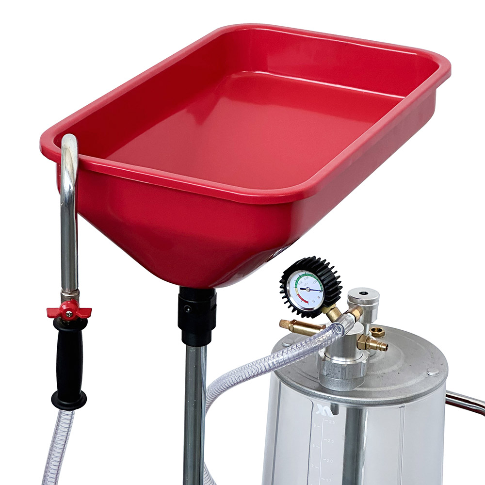 L'aspira olio portatile SOGI REC-75P funziona collegandosi a un compressore d'aria: attraverso la creazione del vuoto, aspira l'olio esausto e lo raccoglie in un serbatoio dedicato, pronto per essere smaltito secondo le normative vigenti. Un sistema efficiente che rende l'operazione di cambio olio più pulita, veloce e rispettosa dell’ambiente.