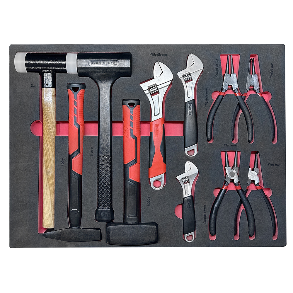 Assortimento di 11 utensili SOGI TER-09 - martelli vari - chiavi registrabili - pinze per seeger - vassoio in EVA