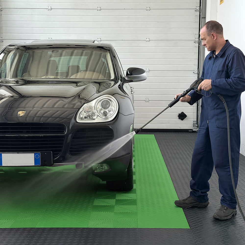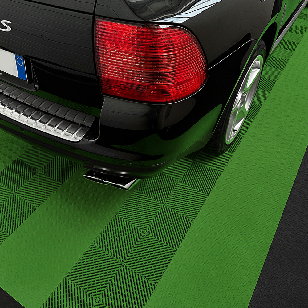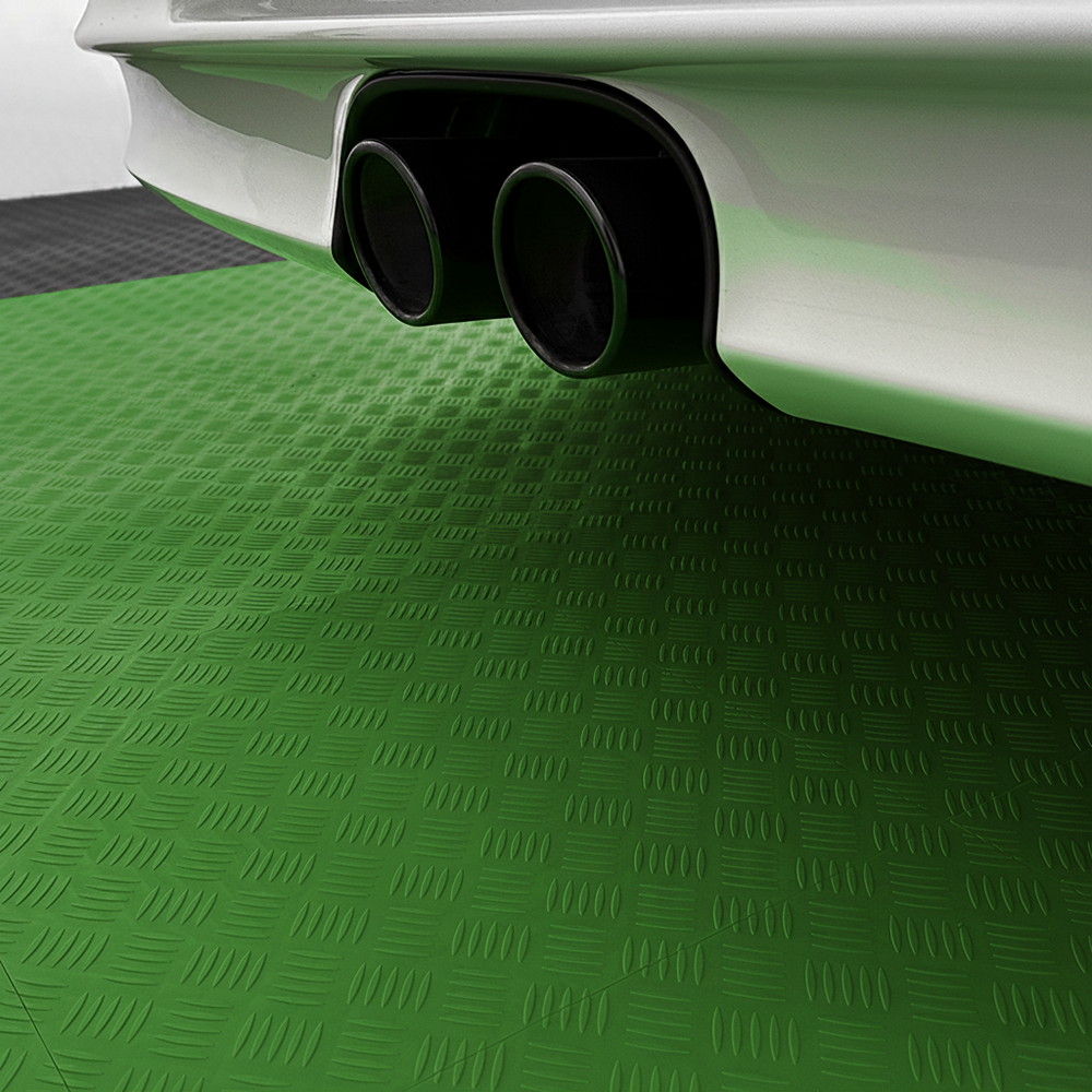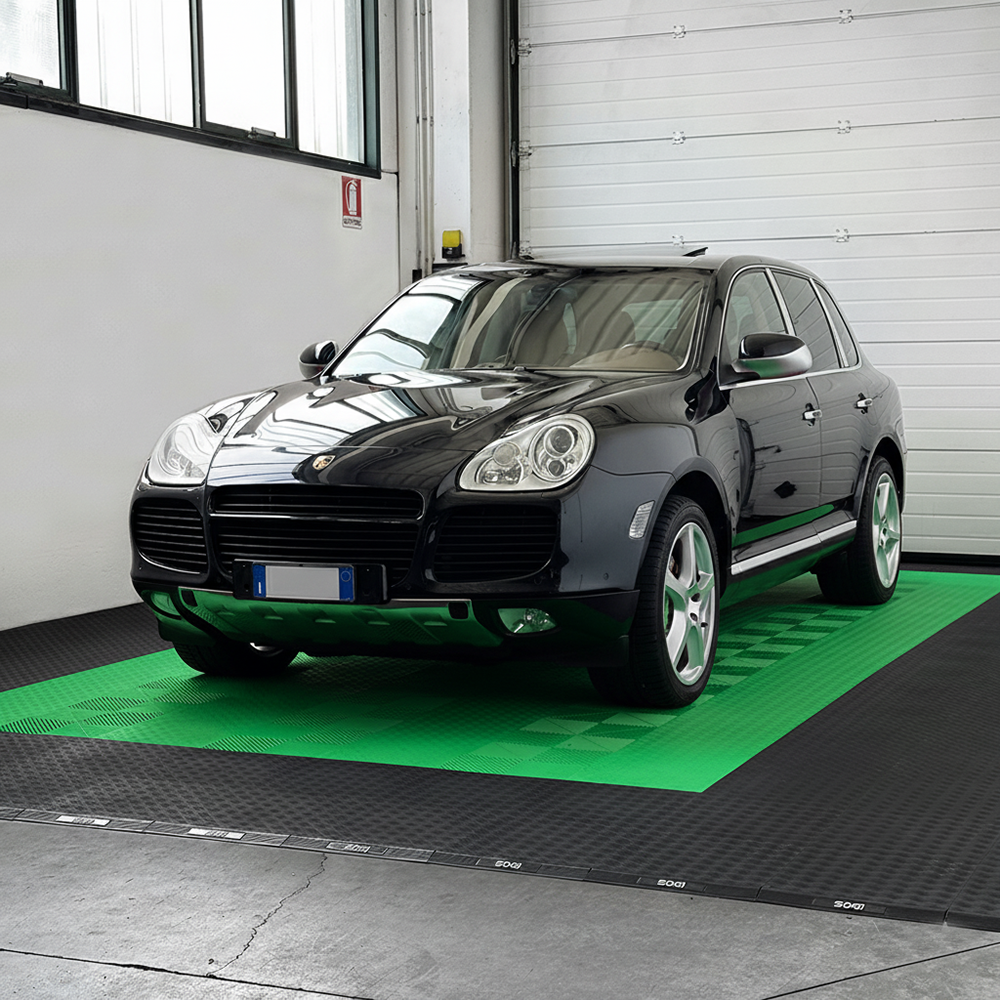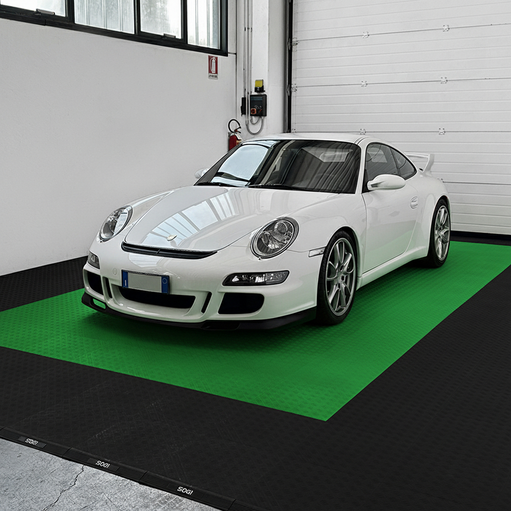 La piastrella SOGI PAV-04-VE è un rivestimento pieno con rilievi antiscivolo in polipropilene (PP) di colore verde, ideale per ambienti dove resistenza, facilità di manutenzione e durabilità sono le priorità. È particolarmente indicato per pavimentare garage, centri car detailing, autofficine, autosaloni, box, fiere, capannoni, centri sportivi, ed in tutte quelle operazioni dove impatto visivo e resa estetica, ma anche resistenza e durevolezza sono un must.