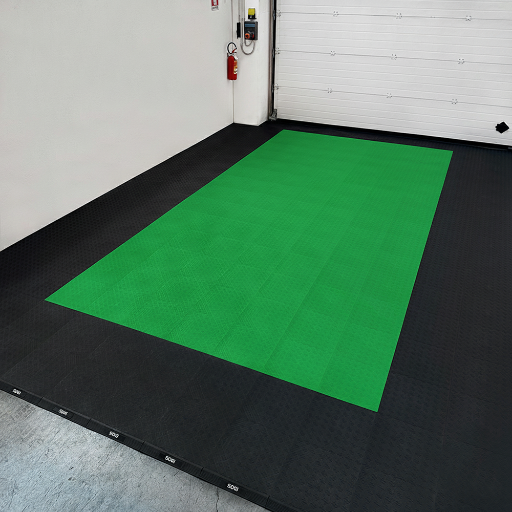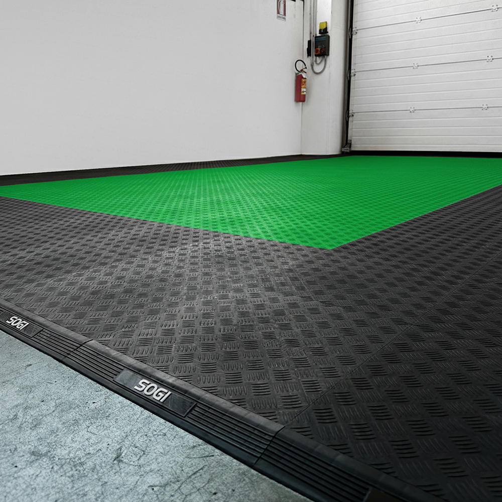 Kit da 6 piastrelle piene 1 mq SOGI PAV-04-VE_1 in PP per pavimento officina e garage - colore verde