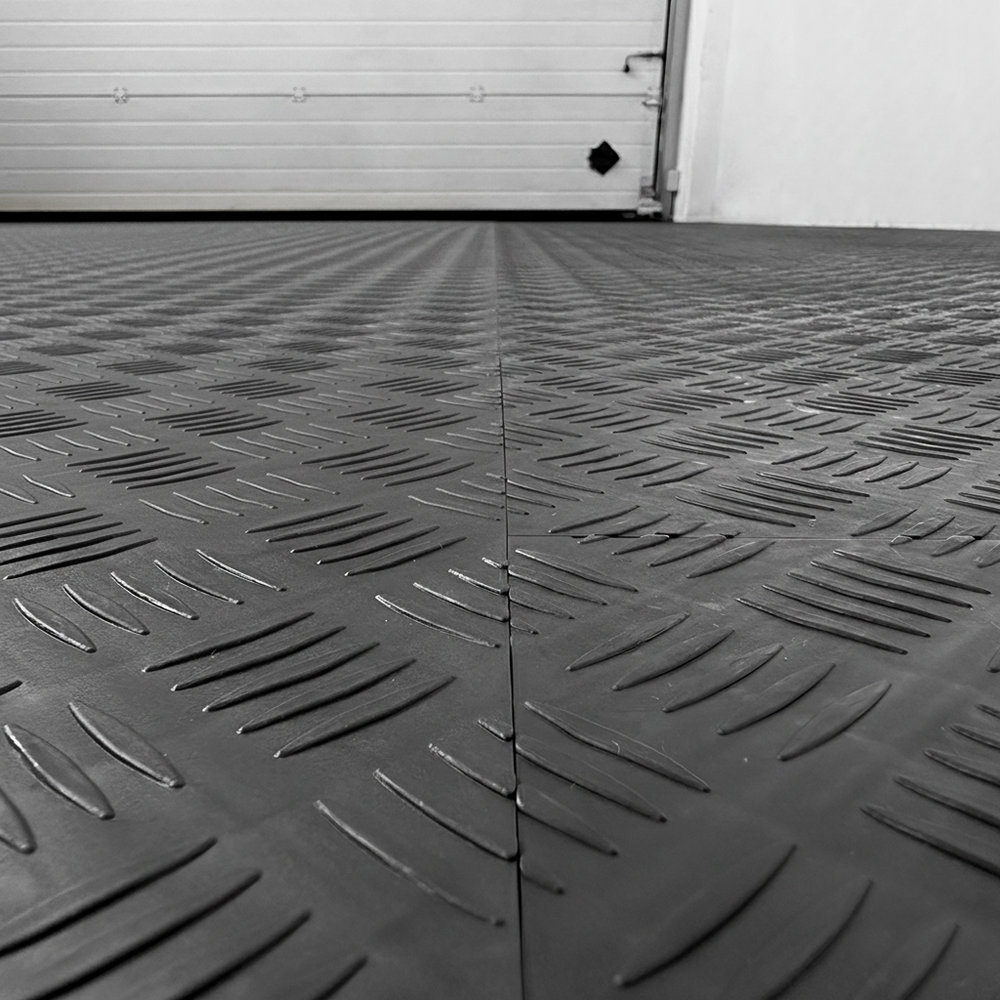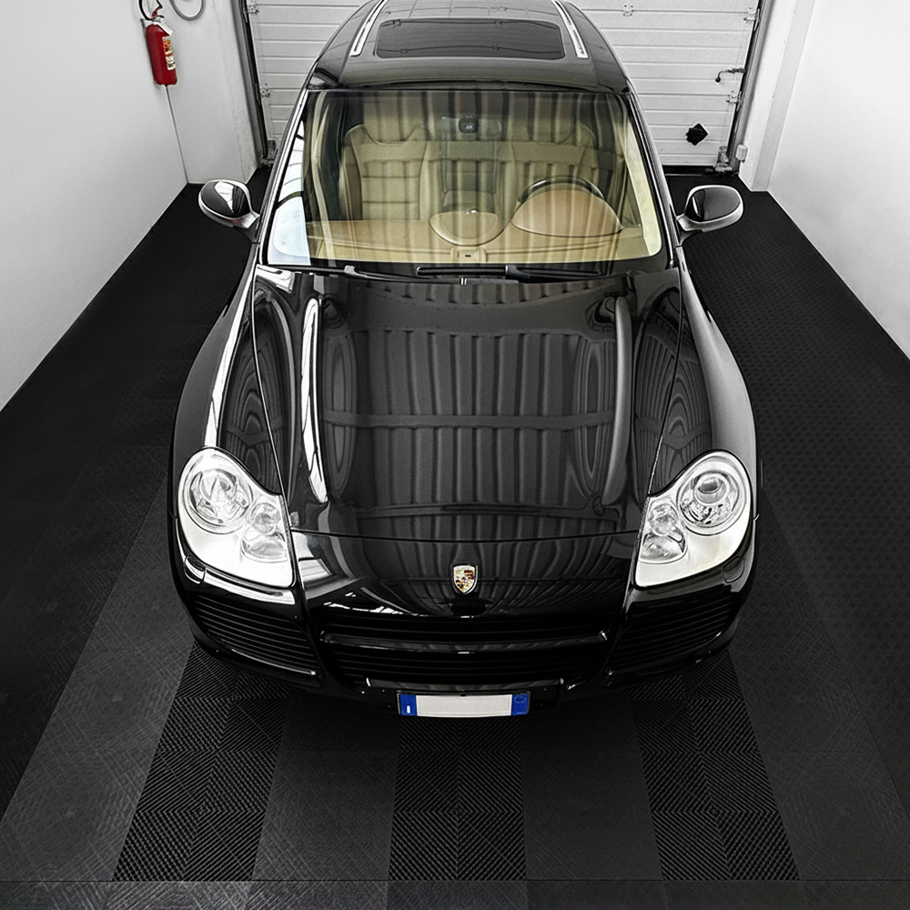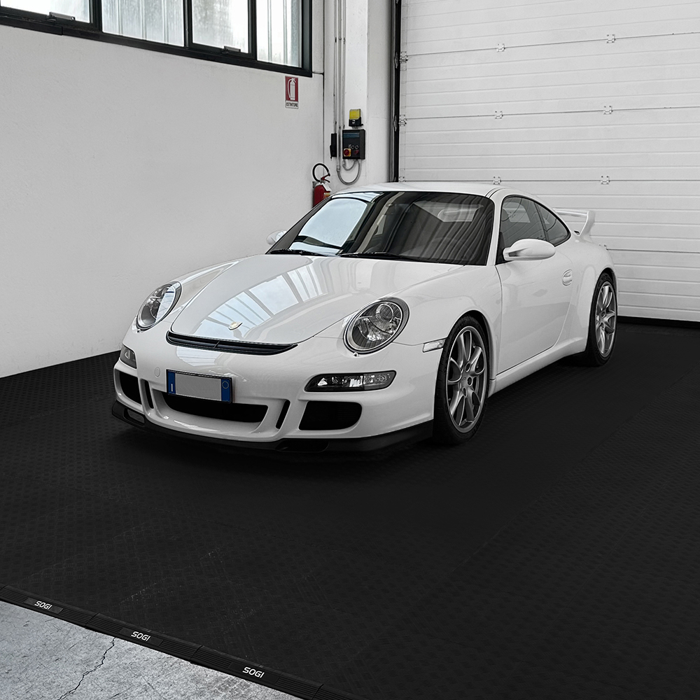 La piastrella SOGI PAV-04-NE è un rivestimento pieno con rilievi antiscivolo in polipropilene (PP) di colore nero, ideale per ambienti dove resistenza, facilità di manutenzione e durabilità sono le priorità. È particolarmente indicato per pavimentare garage, centri car detailing, autofficine, autosaloni, box, fiere, capannoni, centri sportivi, ed in tutte quelle operazioni dove impatto visivo e resa estetica, ma anche resistenza e durevolezza sono un must.
