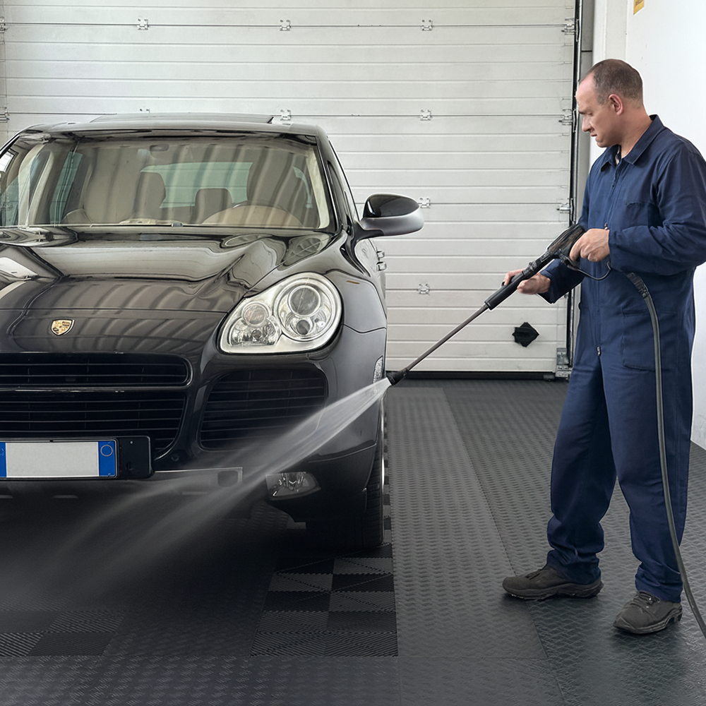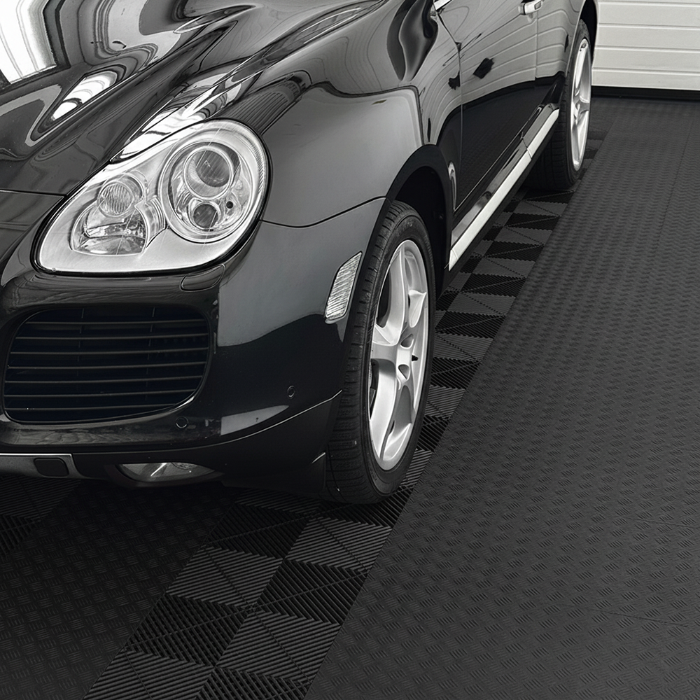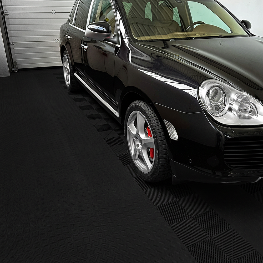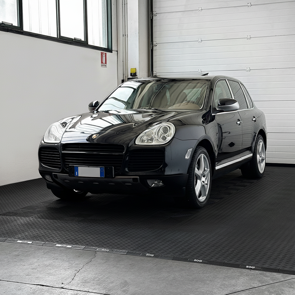 La piastrella SOGI PAV-04-NE è un rivestimento pieno con rilievi antiscivolo in polipropilene (PP) di colore nero, ideale per ambienti dove resistenza, facilità di manutenzione e durabilità sono le priorità. È particolarmente indicato per pavimentare garage, centri car detailing, autofficine, autosaloni, box, fiere, capannoni, centri sportivi, ed in tutte quelle operazioni dove impatto visivo e resa estetica, ma anche resistenza e durevolezza sono un must.