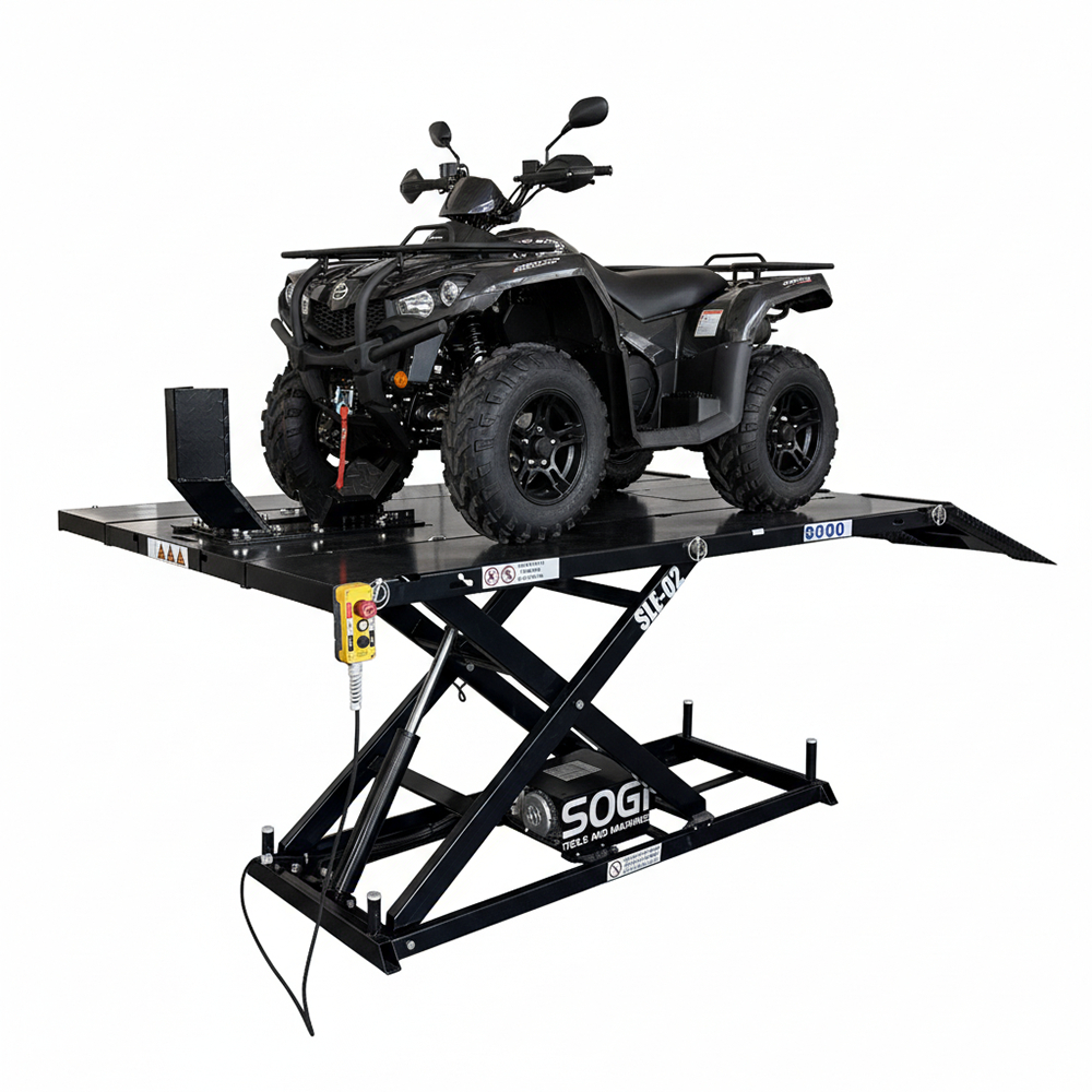SOGI SLE-02 è un ponte sollevatore elettroidraulico a pantografo progettato per moto, quad e trike, ideale per officine, centri assistenza e appassionati di manutenzione meccanica. La robusta struttura in acciaio verniciato a polveri nella colorazione nera garantisce massima resistenza e durata nel tempo, mentre il sistema elettroidraulico offre una movimentazione fluida e controllata della piattaforma tramite telecomando con pulsante di emergenza, assicurando sicurezza totale in ogni condizione di lavoro.