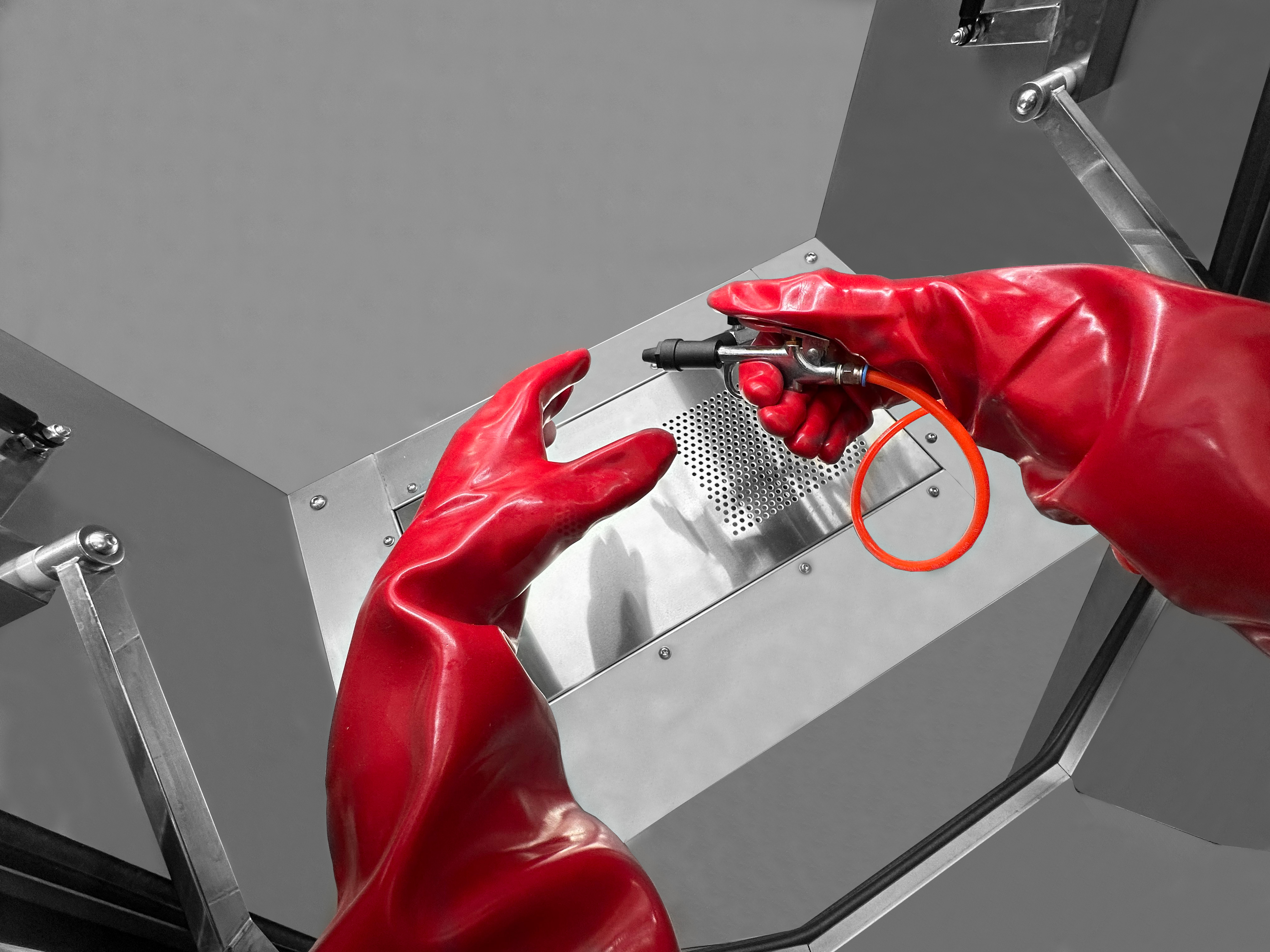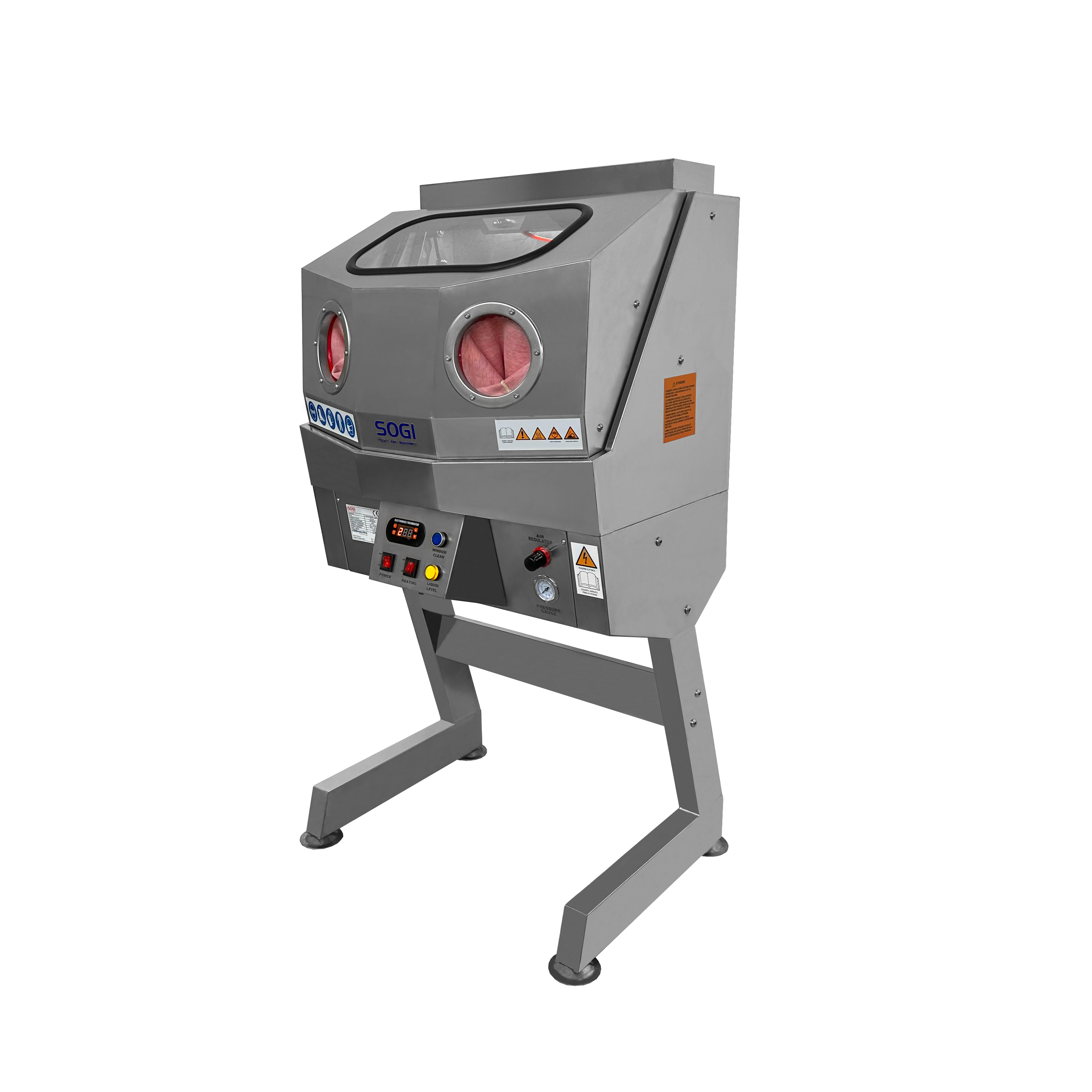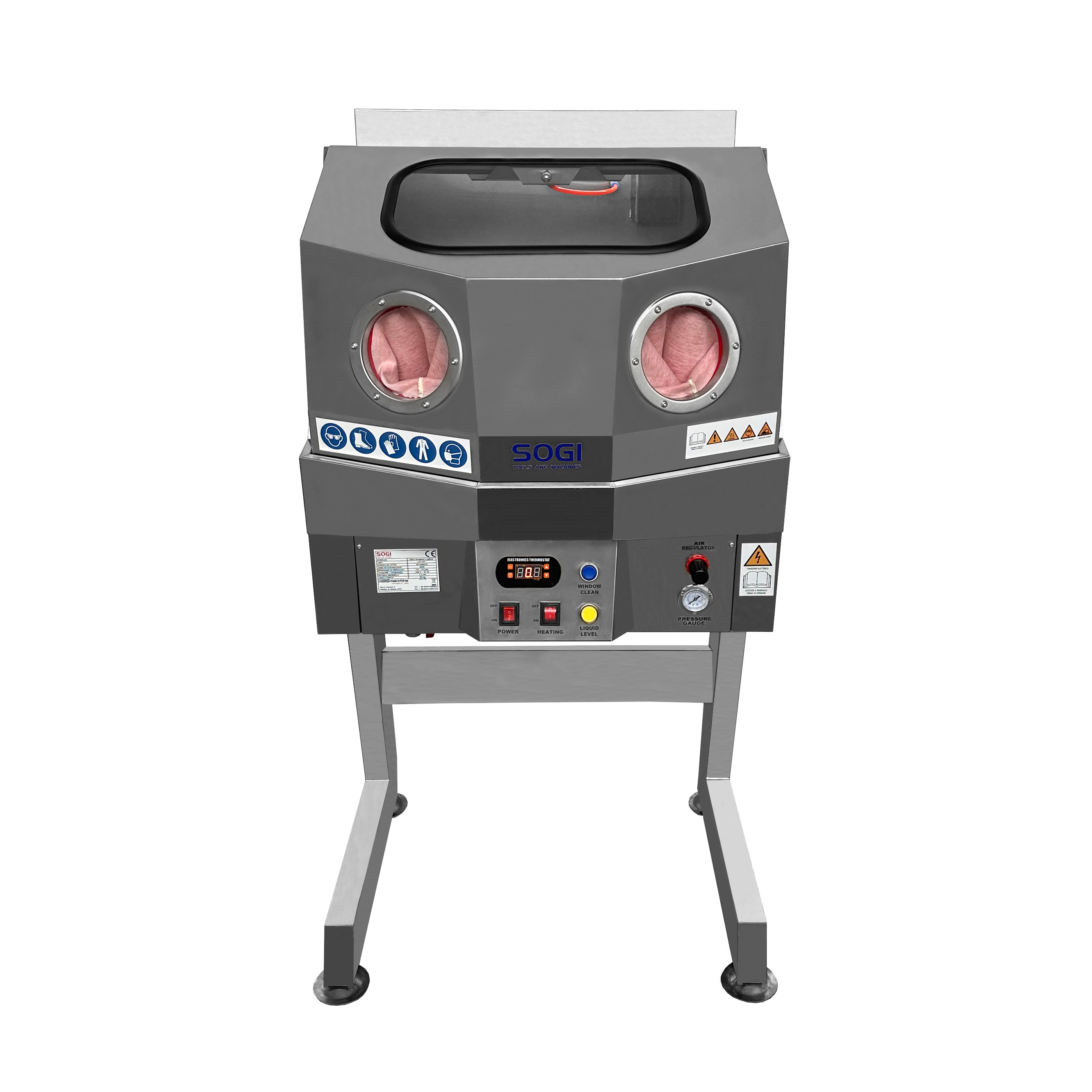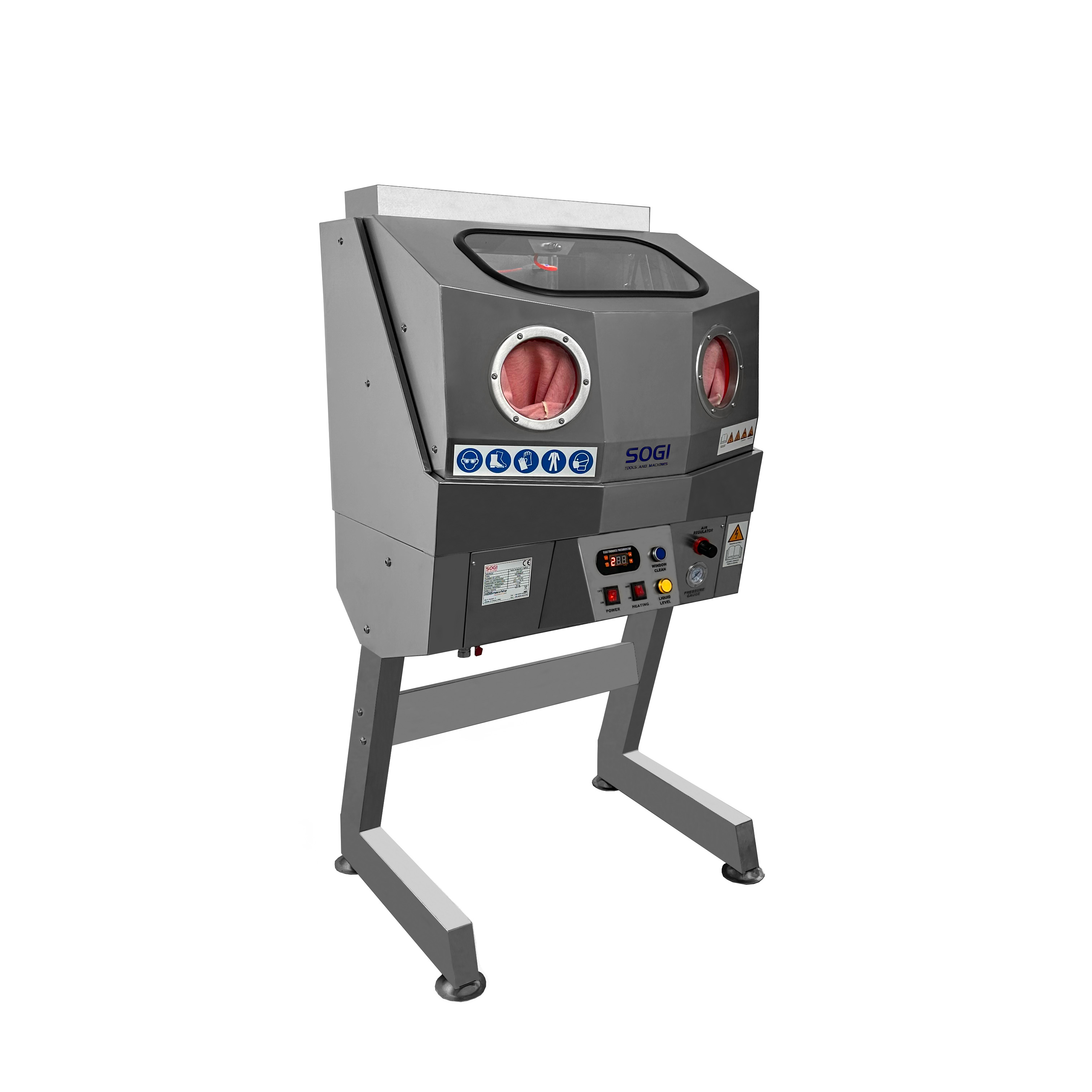 Per garantire il massimo comfort e sicurezza, la vasca di lavaggio SOGI LAV-61P è fornita di luce LED interna da 12 W e di coppia di guanti in lattice naturale, inclusi di serie.
